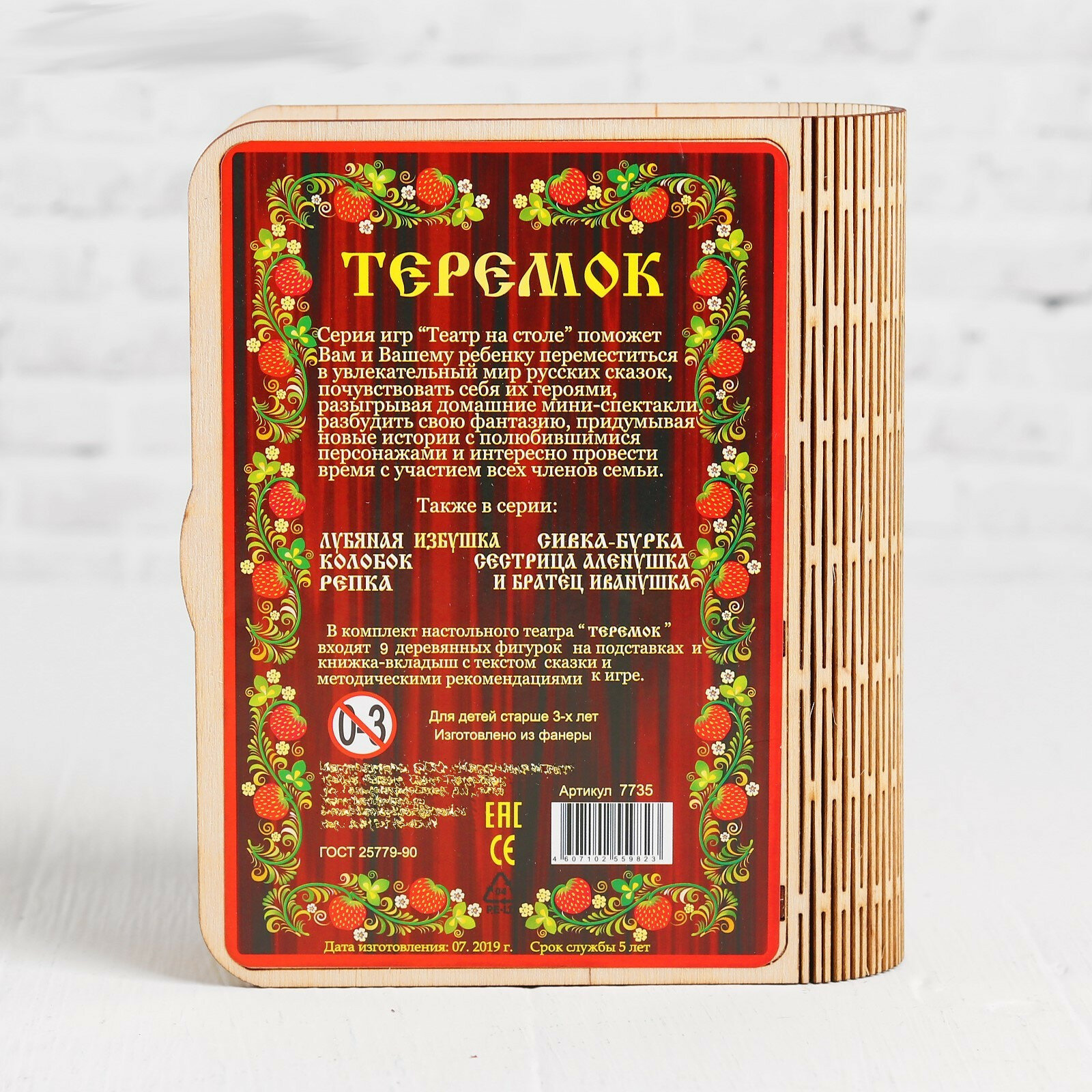 Театр на столе представляет из себя набор фигурок в виде героев сказки "Теремок", которые могут стоять на любой поверхности. Для них не требуется магнитная доска. Кроме того, театр можно аккуратно сложить в деревянную коробку после использования, что существенно облегчит жизнь родителей, сохраняя порядок в детской комнате и сохраняя игрушку на долгие годы.