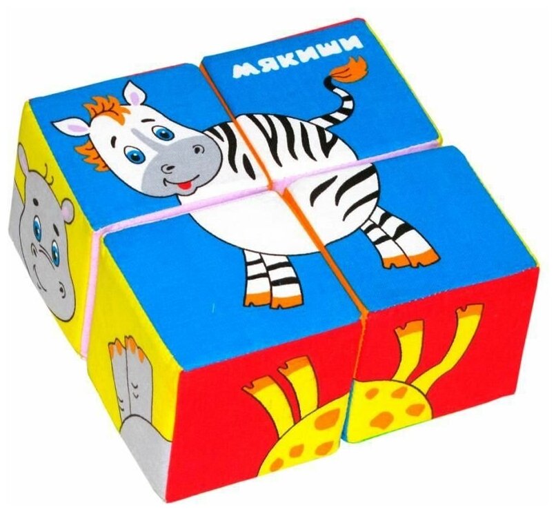 - Игрушка развивающие мягкие кубики "Собери картинку Животные Африки" Мякиши
