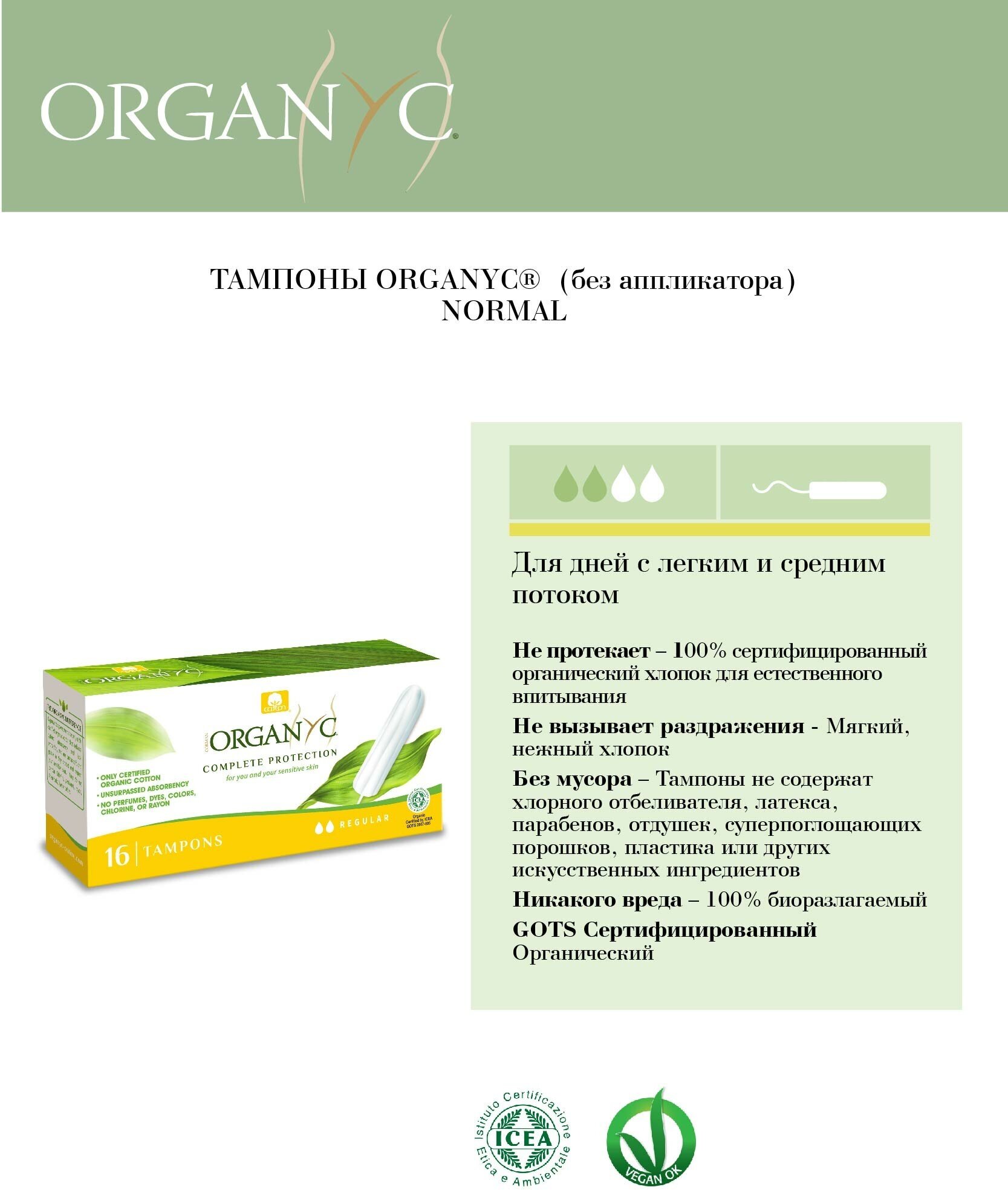 | Полное наименование | Тампоны Organyc Регулар без аппликатора 16 шт |
