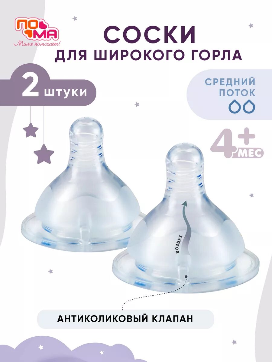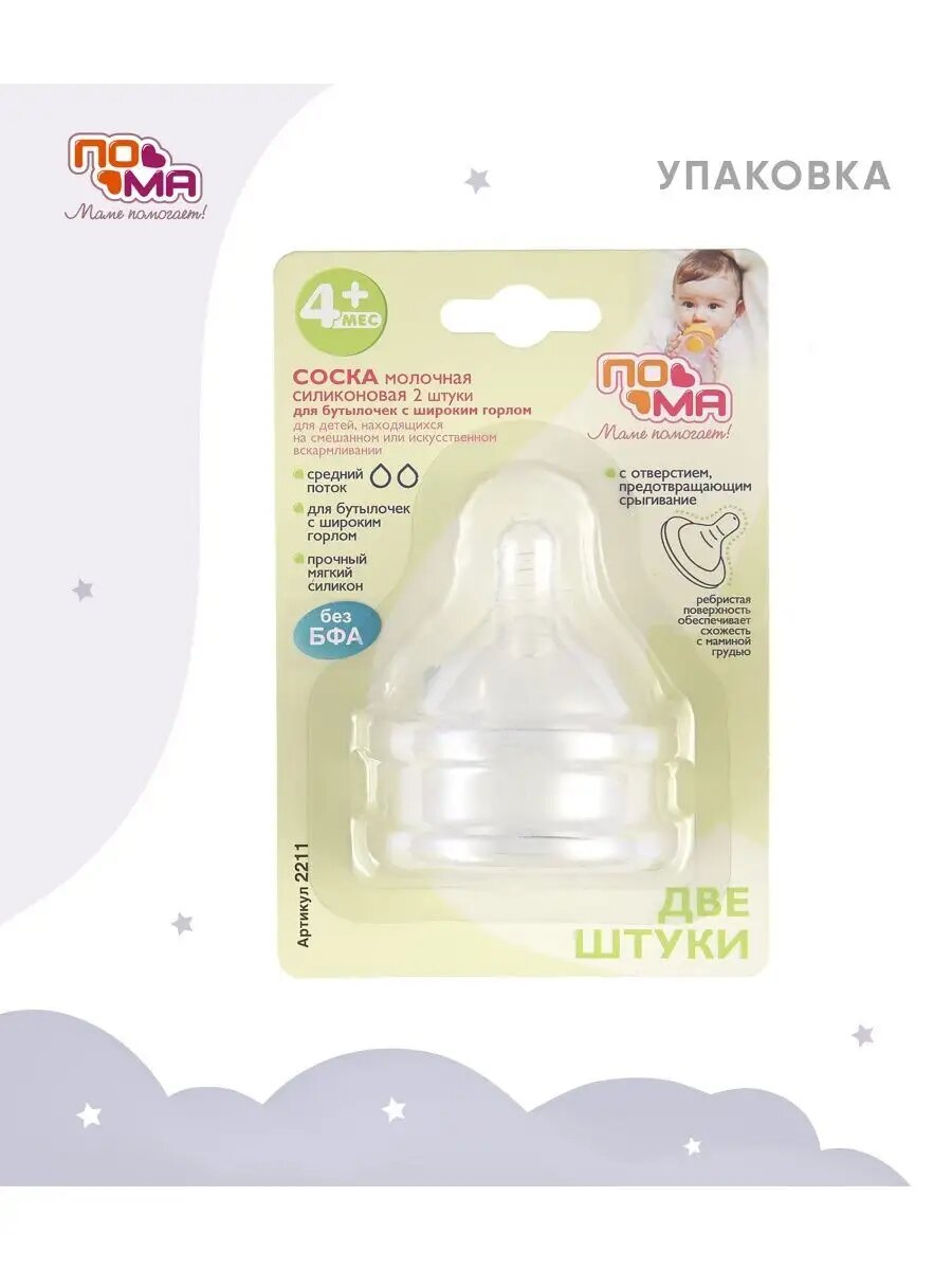 Соска ПоМа силиконовая д/бутылочек с широким горлом с 4 мес. 2 шт. (2211)