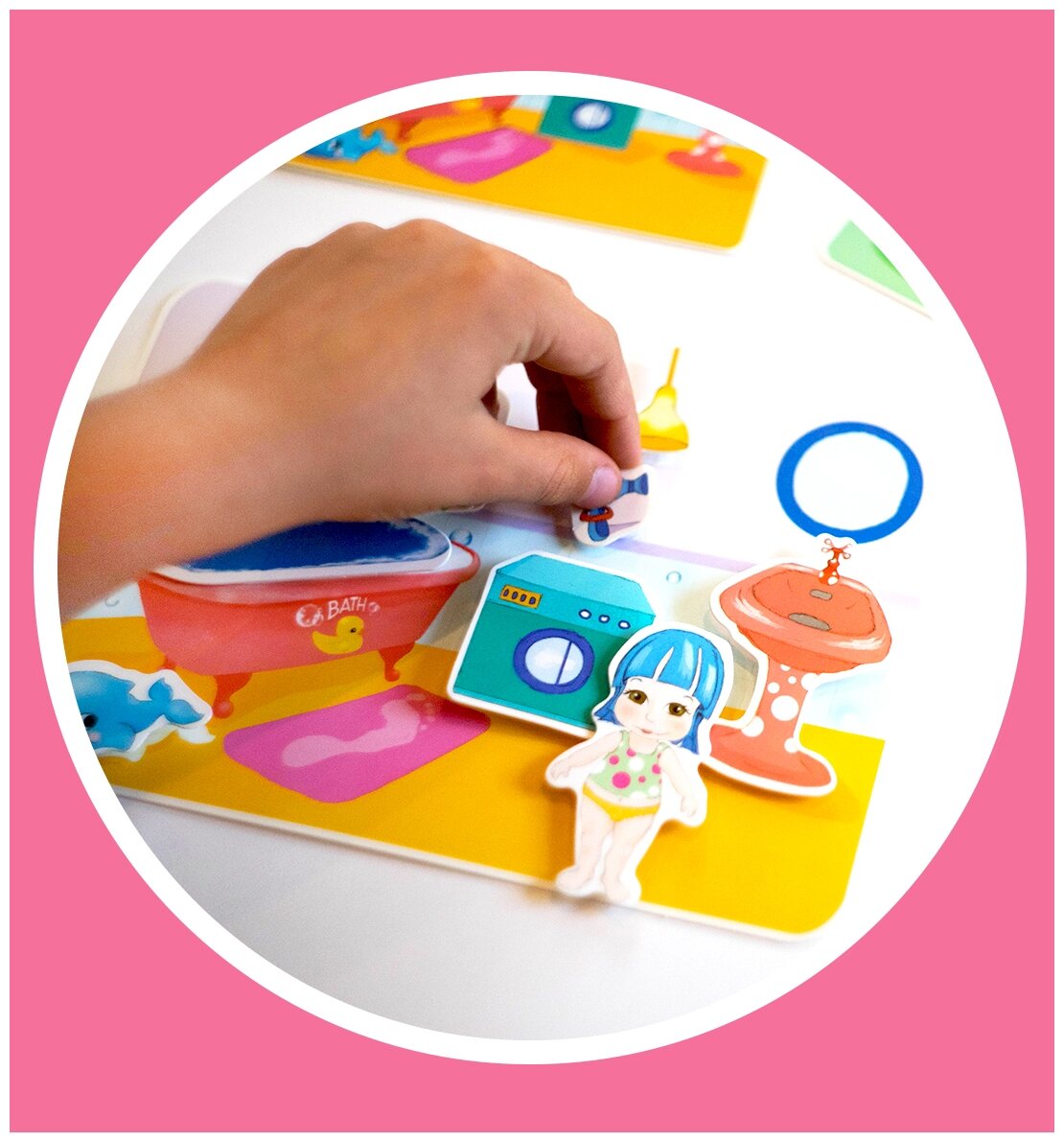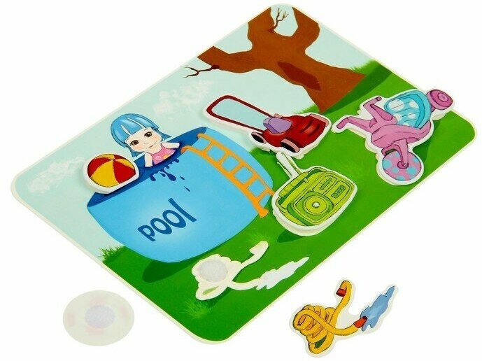 Обучающая игра пазл-липучка состоит из 4 игровых полей, заполняя которые, ребенок изучает название и назначение предметов домашней обстановки.
