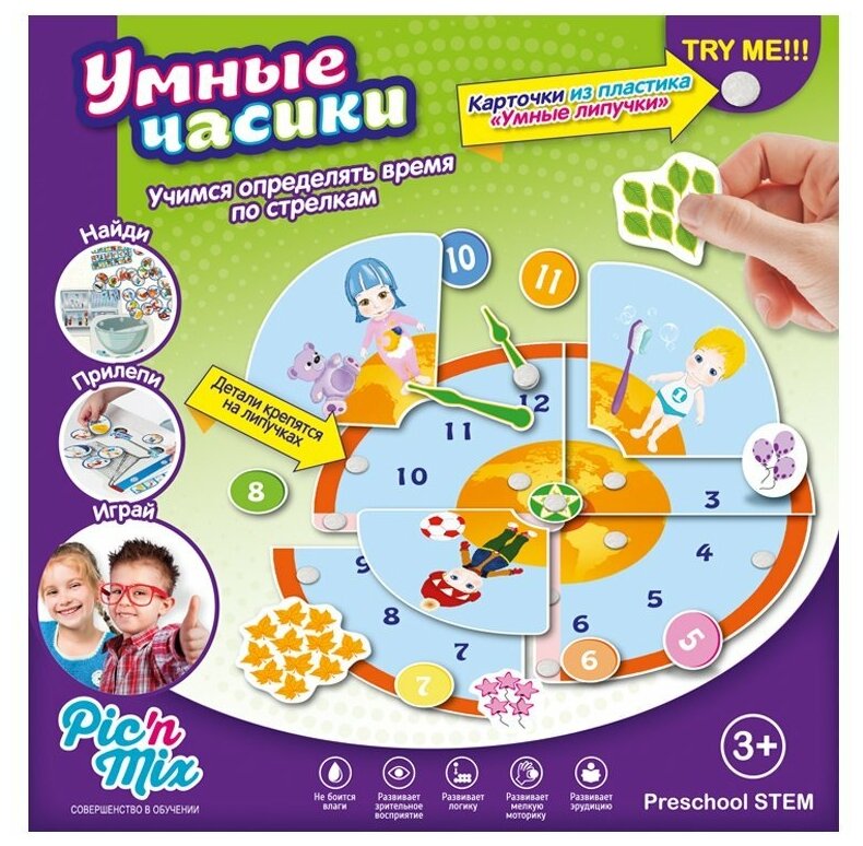 Игра настольная Pic&Mix пазл-липучка Умные часики (112011)