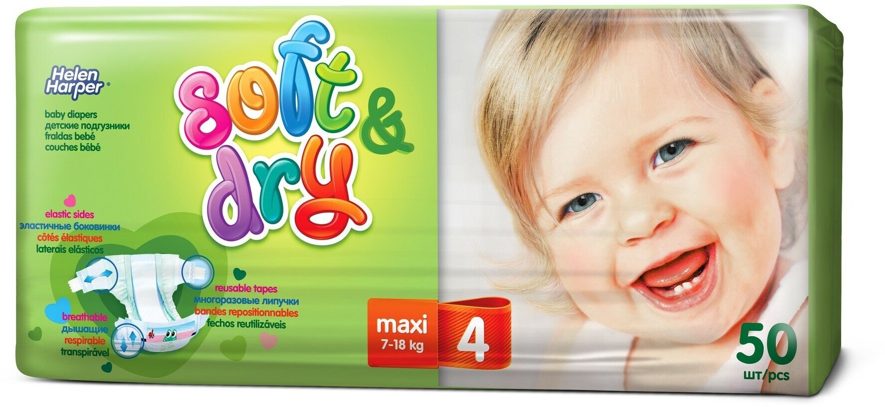 Подгузники Helen Harper Soft&Dry maxi (7-18кг) 50шт 5411416022534 (размер: 4/L (7-14 кг))