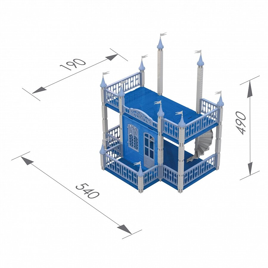 Замок выполнен в воздушных, светлых тонах. В комплектации две лестницы. В открытой просторной конструкции замка есть, где развернутся фантазии вашей принцессы! Традиционно высокое качество всех изделий обеспечивают устойчивое и надежное соединение всех деталей. Замок собирается как конструктор: есть возможность собрать свою модель здания. Высота потолков 30 см, это значит, что Замок подойдет для игры любыми стандартными куклами большинства известных производителей. В наборе есть инструкция по сборке.