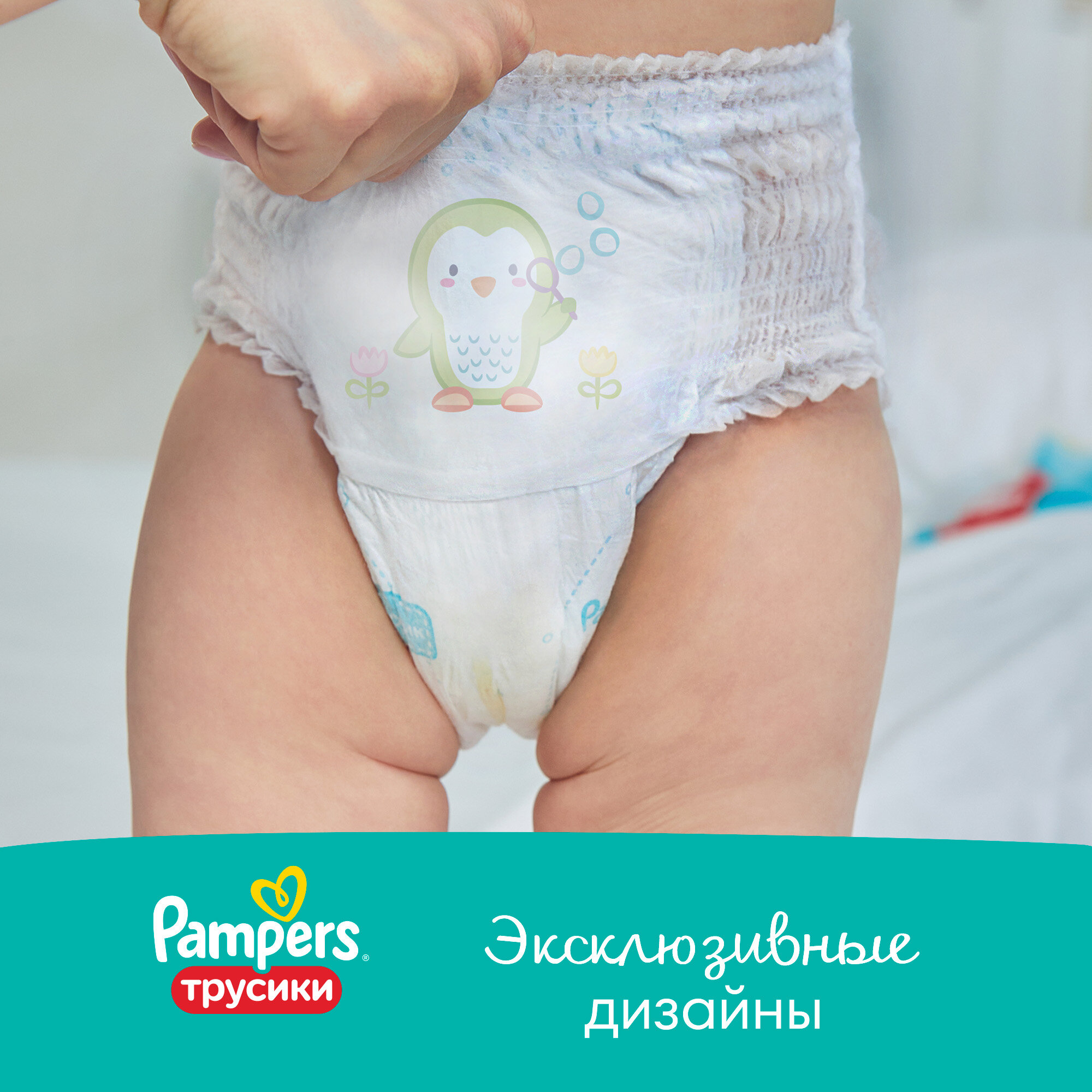 Подгузники-трусики Pampers Pants предназначены для малышей весом 12-17 кг. Иногда подгузник на липучках может вызывать дискомфорт у малыша - прилегая туго или наоброт, слишком свободно, вызывая протекания. Есть выход! Трусики Pampers с удобной посадкой 360 и эластичным пояском комфортно прилегают к животику и ножкам, защищая от протеканий на всю ночь. Трусики Pampers легко надевать и снимать, не вызывая дискомфорт у малыша, даже если он очень подвижен.