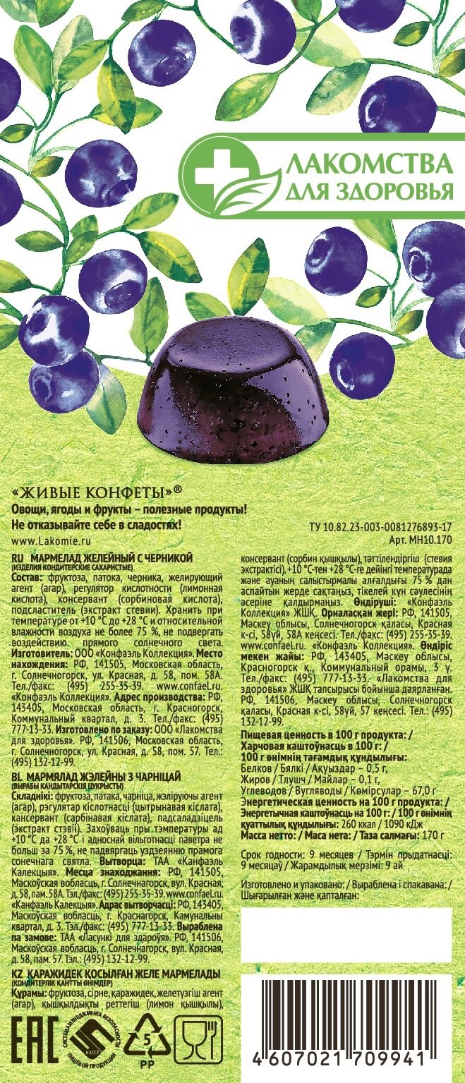Мармелад Лакомства для здоровья желейный с черникой 170 г (2893)