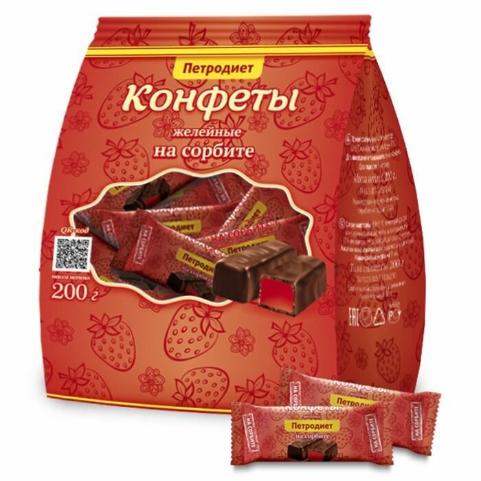 Желейные конфеты "Петродиет" на сорбите. Главным составляющим элементом в начинки желейных конфет является пектин - полезный для организма ингредиент, обладающий нежным и приятным вкусом.