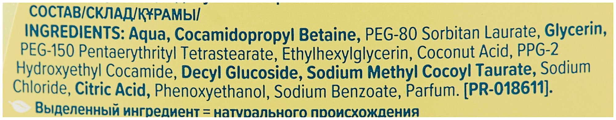 Состав: Aqua, Coco-Glucoside, Cocamidopropyl Betaine, Citric Acid, Acrylates/C10-30 Alkyl Acrylate Crosspolymer, Sodium Chloride, Glyceryl Oleate, p-Anisic Acid, Sodium Hydroxide, Phenoxyethanol, Sodium Benzoate, Parfum.
