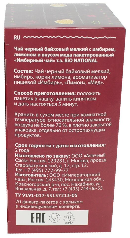 | Состав | чай черный байховый мелкий, имбирь, корки лимона, ароматизаторы пищевые |