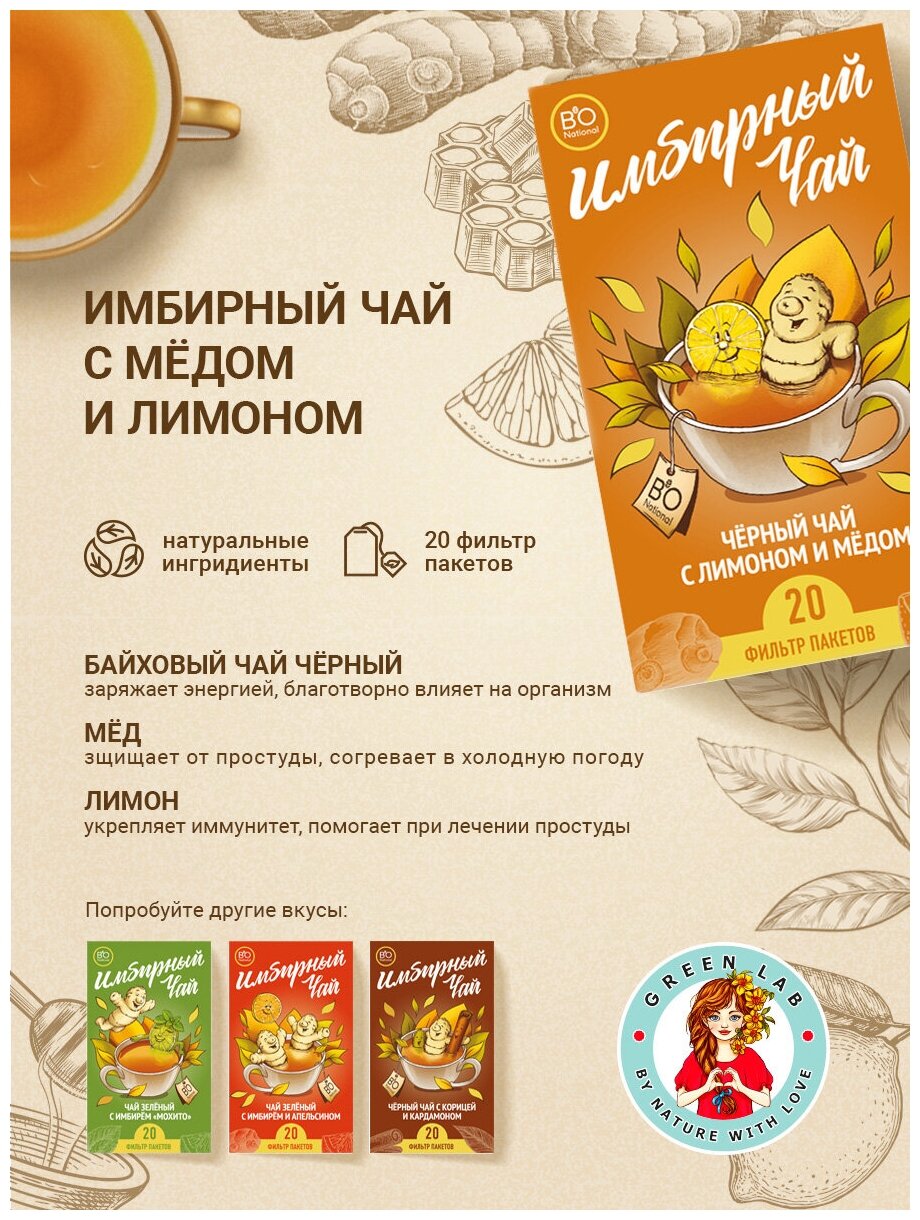 Чай BiO National имбирный черный с медом и лимоном 40 г