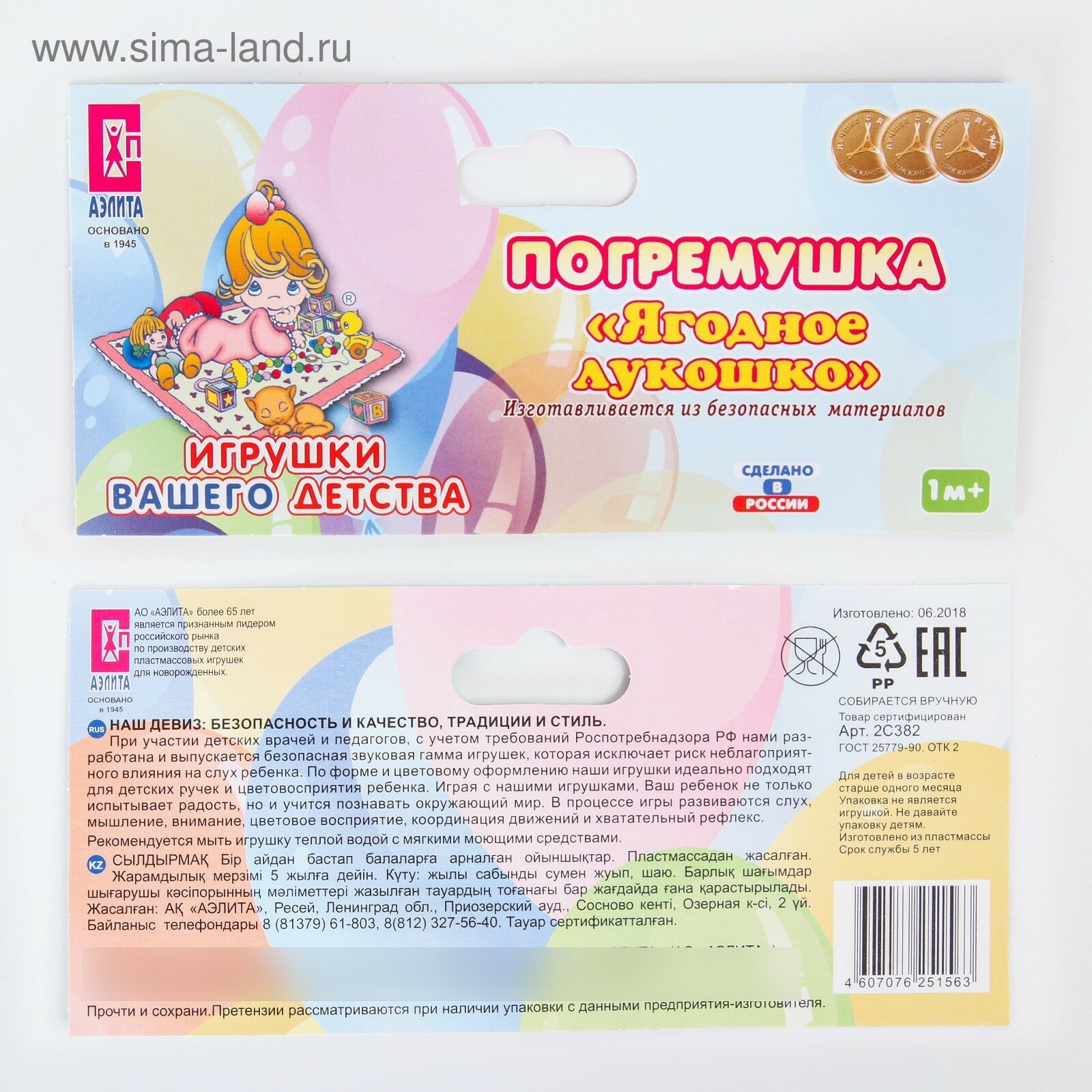 На сегодняшний день товар «Погремушка Аэлита Ягодное лукошко (2С382)» можно купить с кешбеком в 1 магазине: Яндекс.Маркет