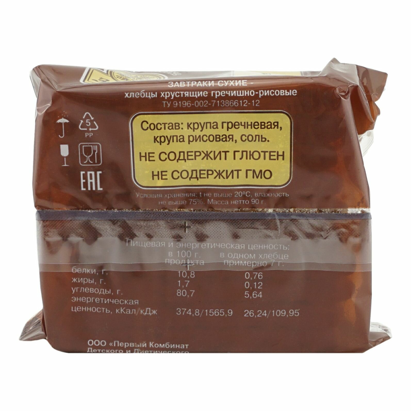 Постоянный контроль качества сырья и готовой продукции позволяет нам гарантировать отсутствие в ней глютена. В состав хлебцов входят только те ингредиенты, которые указаны на упаковке.