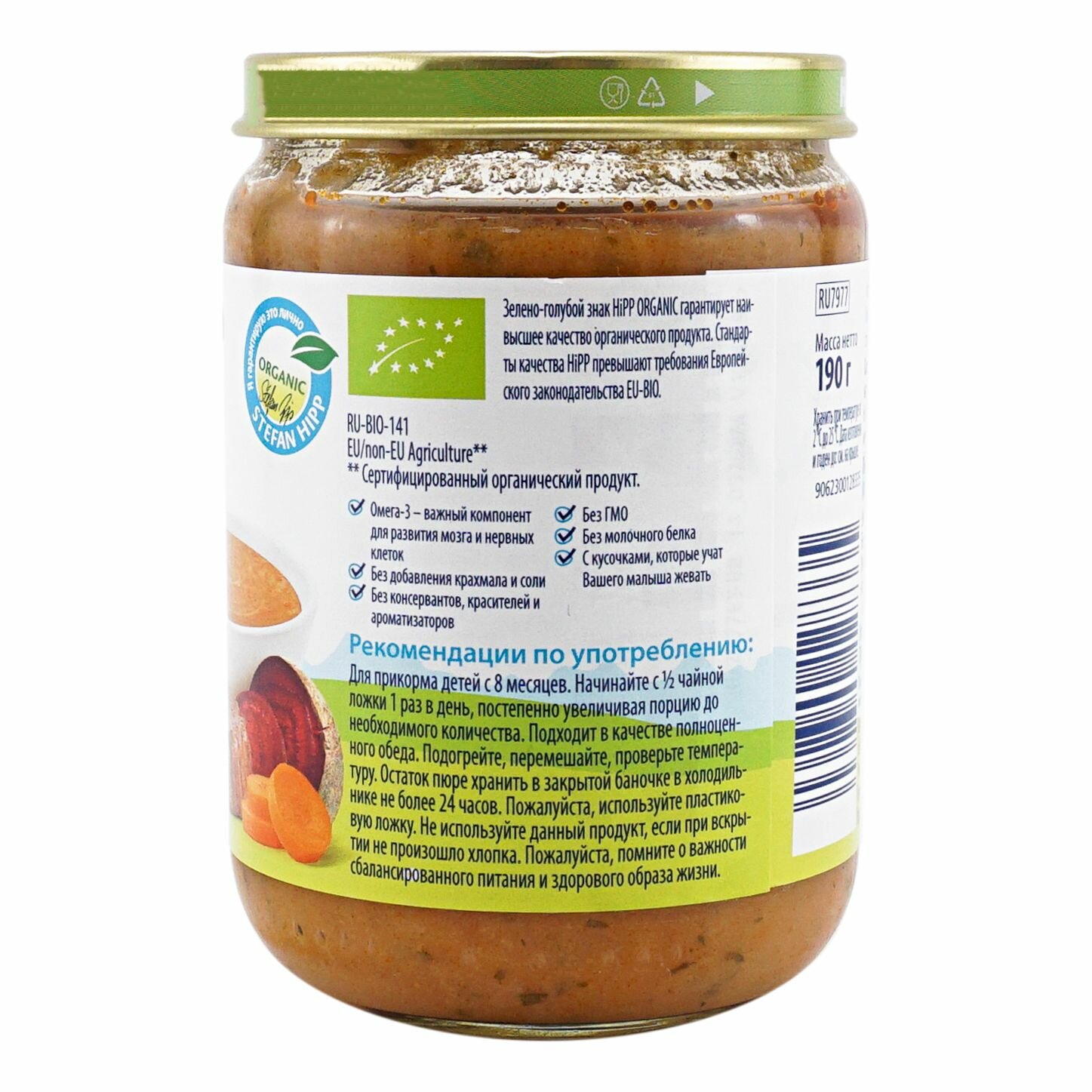 Рекомендации по употреблению: Для прикорма детей с 8 месяцев. Начинайте с ½ чайной ложки 1 раз в день, постепенно увеличивая порцию до необходимого количества. Подогрейте на водяной бане или в ми- кроволновой печи требуемое количество, перемешайте и проверьте температуру. Остаток пюре, который не подогревался, хранить в холодильнике в закрытой баночке не более 24 часов. Чтобы предотвратить повреждение баночки, пожалуйста, используйте только пластиковую ложку.
