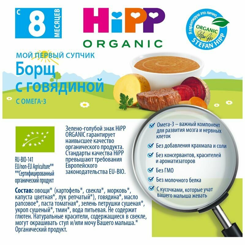 Суп Hipp Борщ с говядиной Мой первый супчик 190 г (7977)