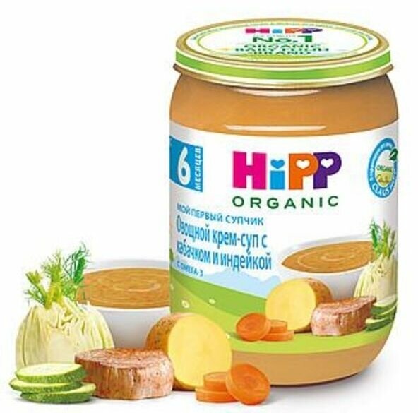 - Суп. Овощной крем-суп с куриной грудкой от Hipp для детей с 6 месяцев