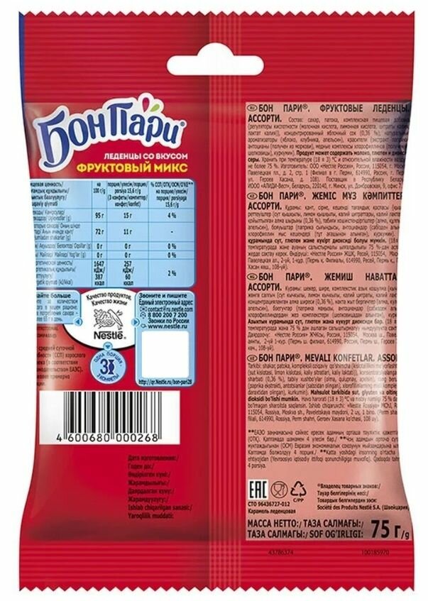 Сервис сравнения цен СкидкаГИД предлагает сравнить цены на товар «Карамель Бон Пари Леденцы Фруктовый микс 75 г (12181346)»