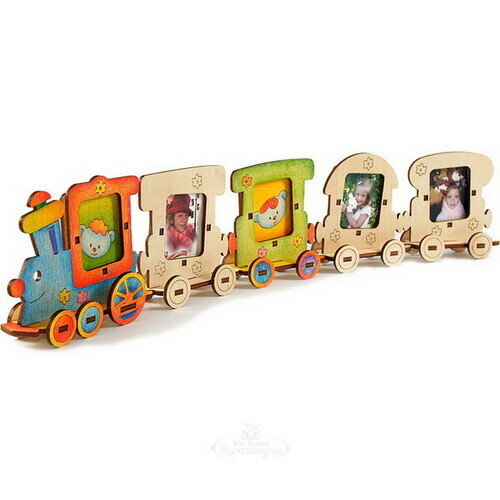 Игрушка состоит из паровозика и прицепных вагончиков, выполненных в виде рамок для фотографий. Возможно использование в качестве самостоятельной игрушки, семейной рамки для фотографий ("Папа - мама - я - братик - сестра" или "Мне 1-2-3-4-5 лет").