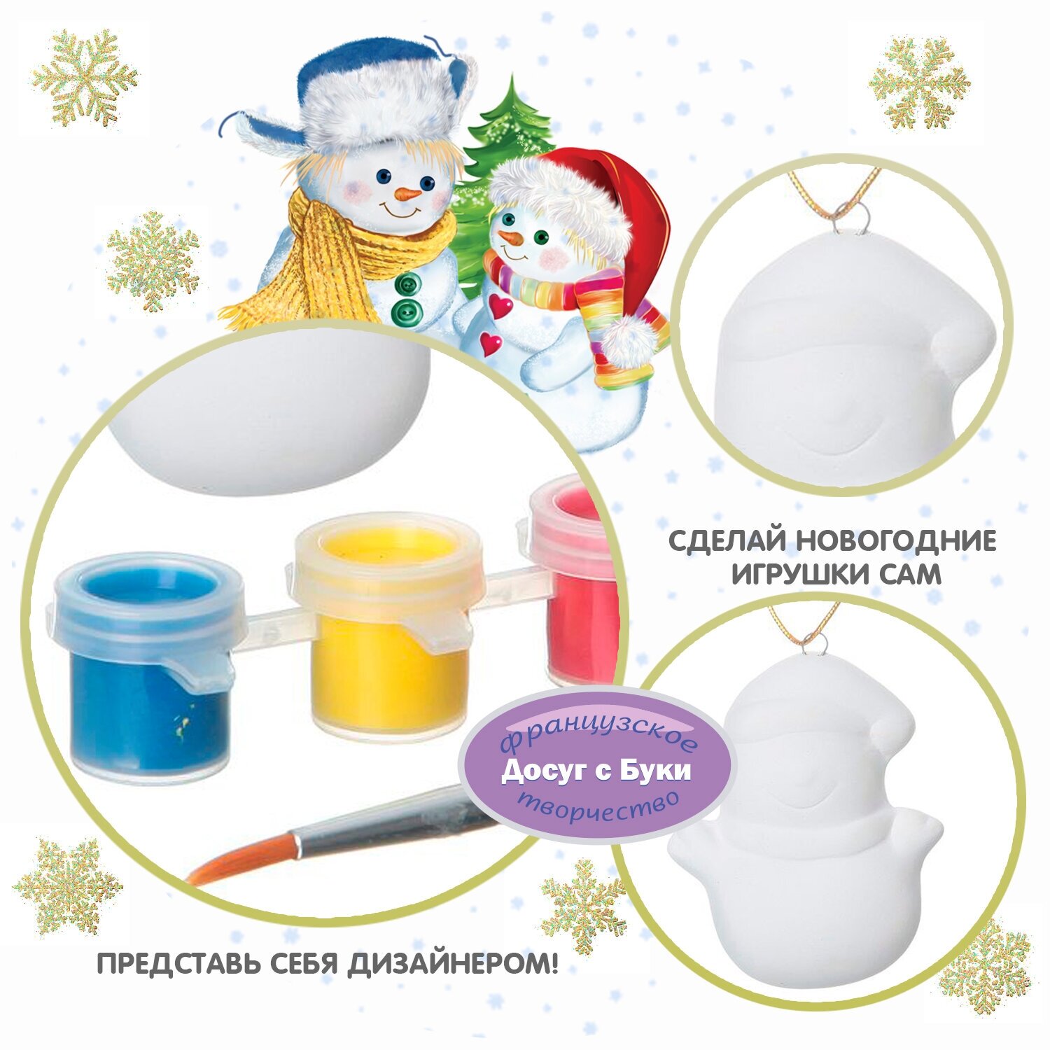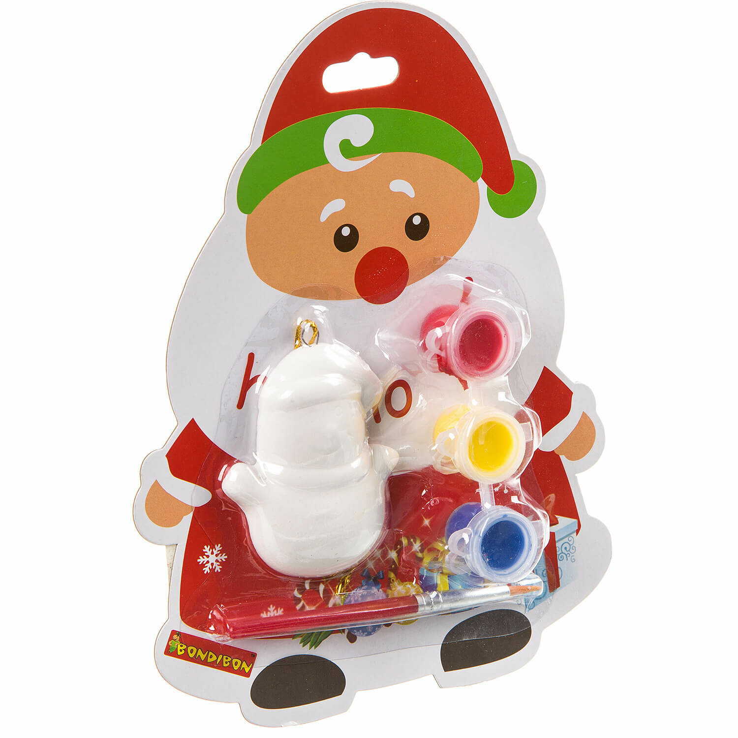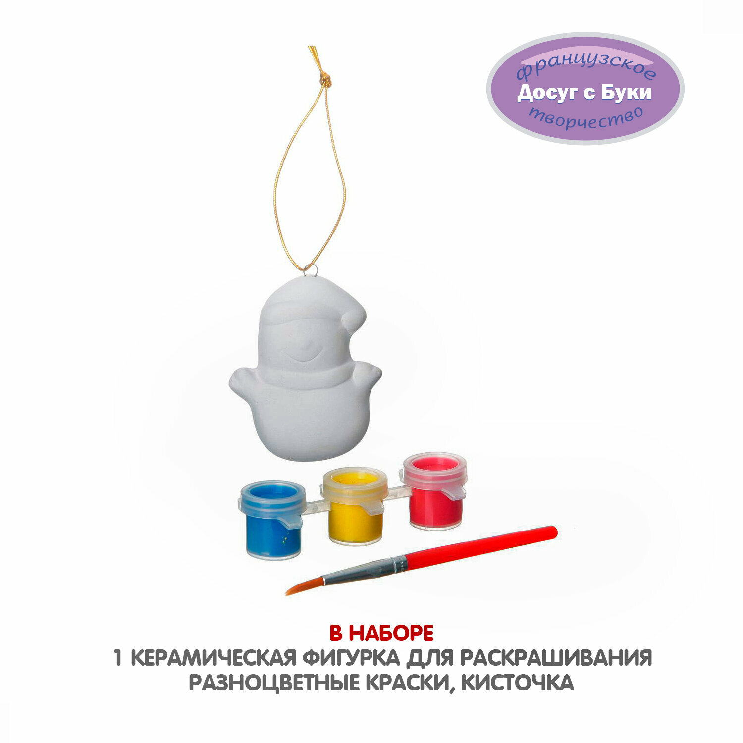 В набор входит: керамическая фигурка Деда Мороза, кисточка, яркие краски трех цветов и инструкция.