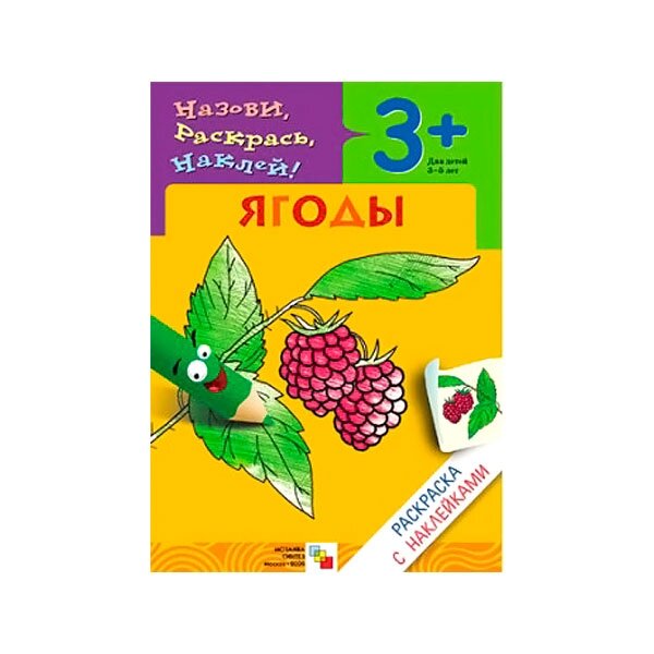 Раскраска с наклейками."Ягоды" Замечательные познавательные раскраски серии "Назови, раскрась, наклей!" издательства "Мозаика-Синтез" не оставят равнодушным ни одного малыша! Раскраска "Ягоды" содержит изображения: виноград, вишня, клубника, крыжовник, малина, слива, смородина, черника. Книжки-раскраски этой серии очень удобного формата (размер детской раскраски -17*24 см.), их легко взять с собой на прогулку, в поликлинику, в гости. Яркие красочные наклейки, четкий контур, реалистичность изображения. С помощью раскрасок данной серии малыш узнает много нового и интересного о животных, птицах, растениях и множестве других вещей.