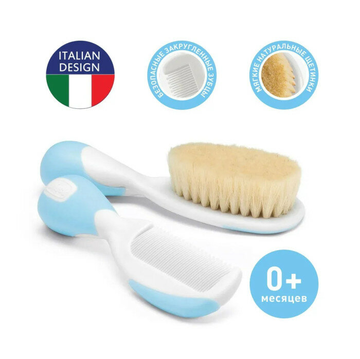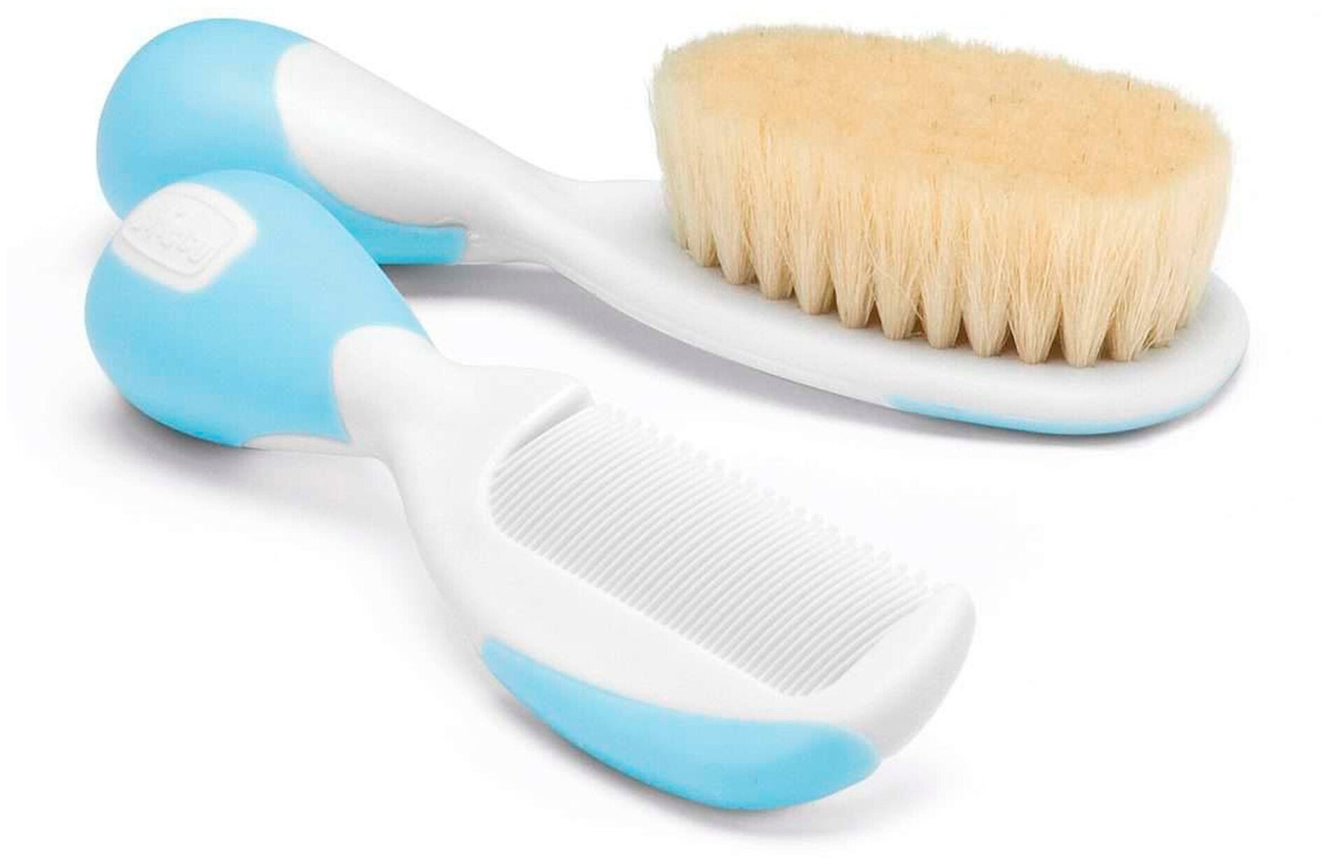 Набор Chicco Safe Hygiene расческа и щётка с натуральными щетинками голубой (320611036)