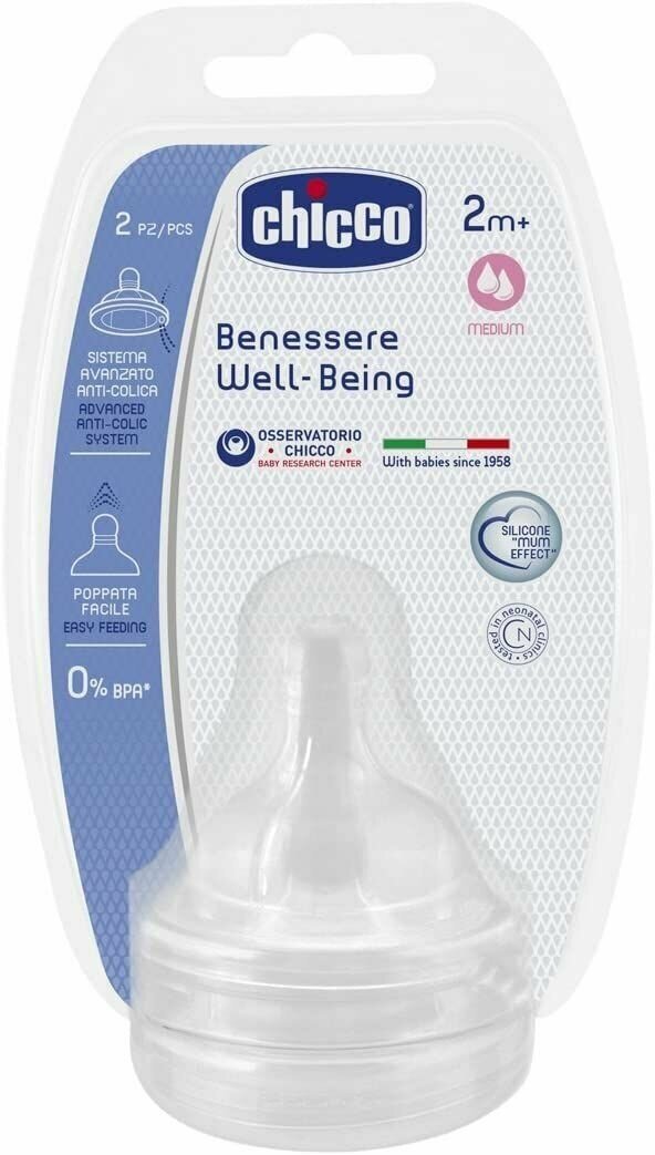Соска Chicco Wellbeing силиконовая средн.поток с 2 мес. 2 шт (310205085)