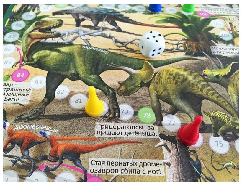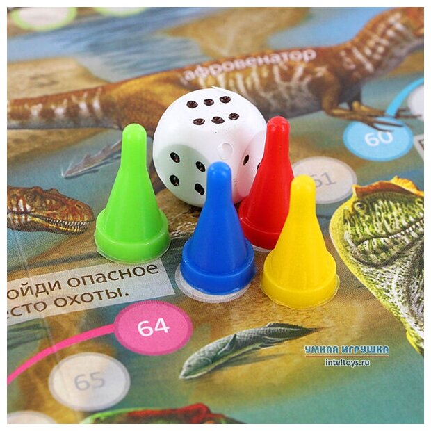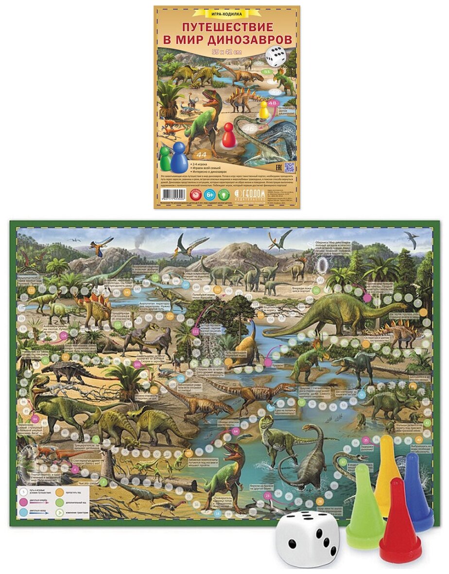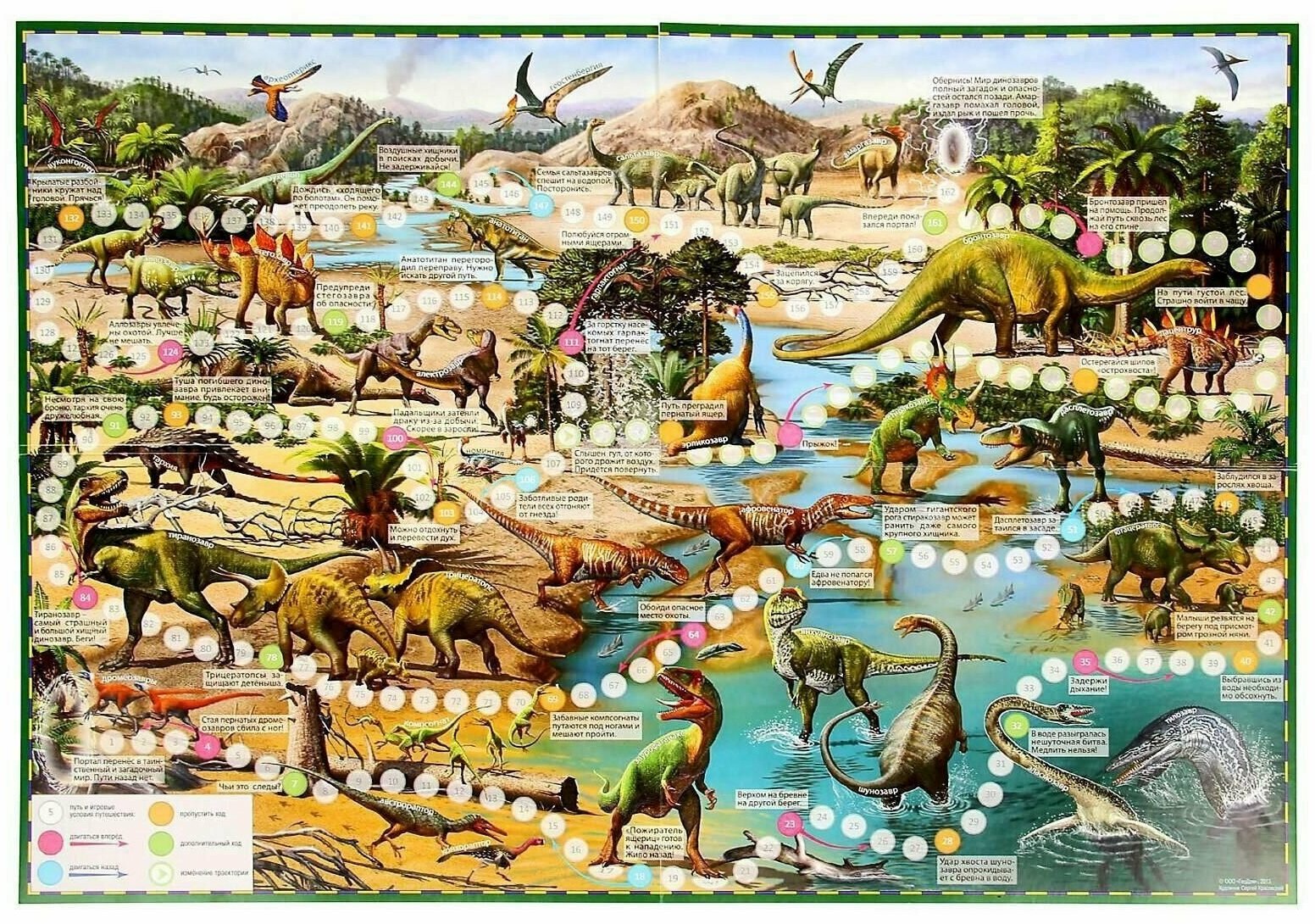 Мир динозавров - это удивительный и загадочный мир животных, населявших нашу планету в далёкой древности. Переместится в то доисторическое время поможет игровой портал. В пути игрокам встретятся опасные хищники и травоядные гиганты, выполненные художником с палеонтологической точностью. Участников игры ждут состязания, полные опасностей и приключений, новые знания и незабываемые впечатления. Игра продолжается, пока её не закончит предпоследний игрок.+ Игра-ходилка Путешествие в мир динозавров сделана с любовью к детям. Добро пожаловать в Игру!