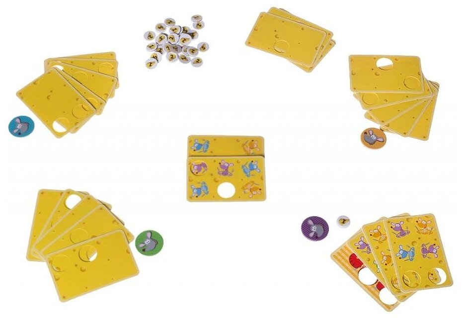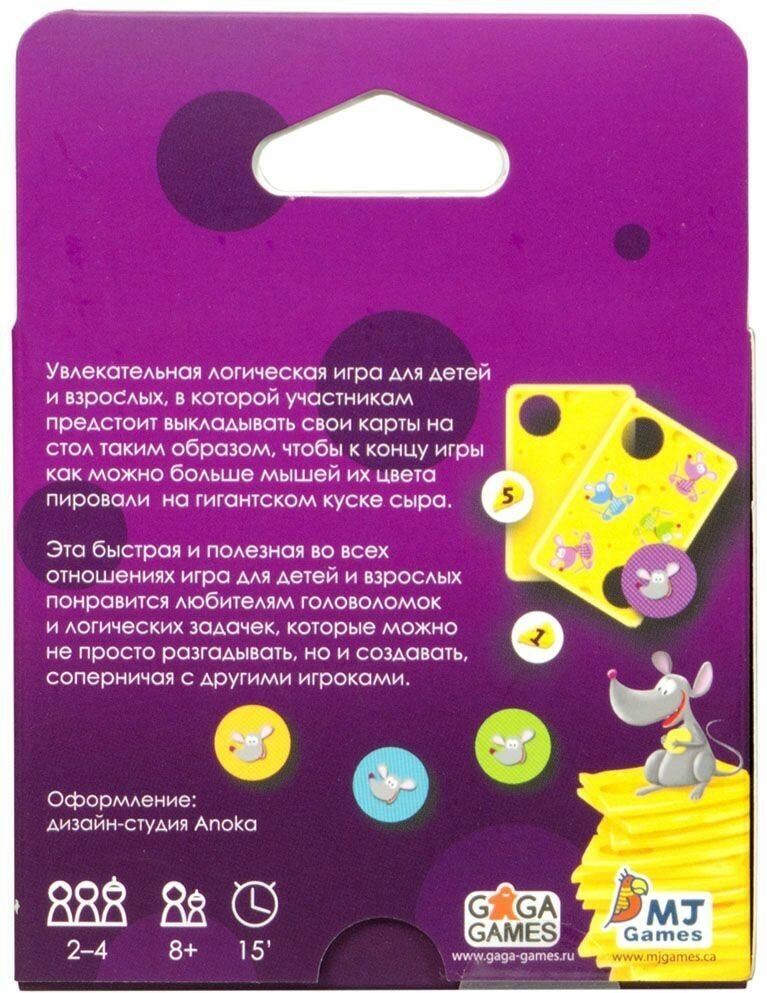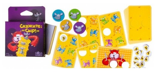 Увлекательная логическая игра для детей и взрослых, в которой участникам предстоит выкладывать свои карты на стол таким образом, чтобы к концу игры как можно больше мышей их цвета пировали на гигантском куске сыра. Отличный способ развить пространственное мышление и поупражняться в логике – это семейная игра Скажите “Сыр!”, в которой игроки поборются за самый лакомый кусочек сыра, выкладывая на стол дырчатые карточки с мышами или кошками, в зависимости от выбранной ими тактики.