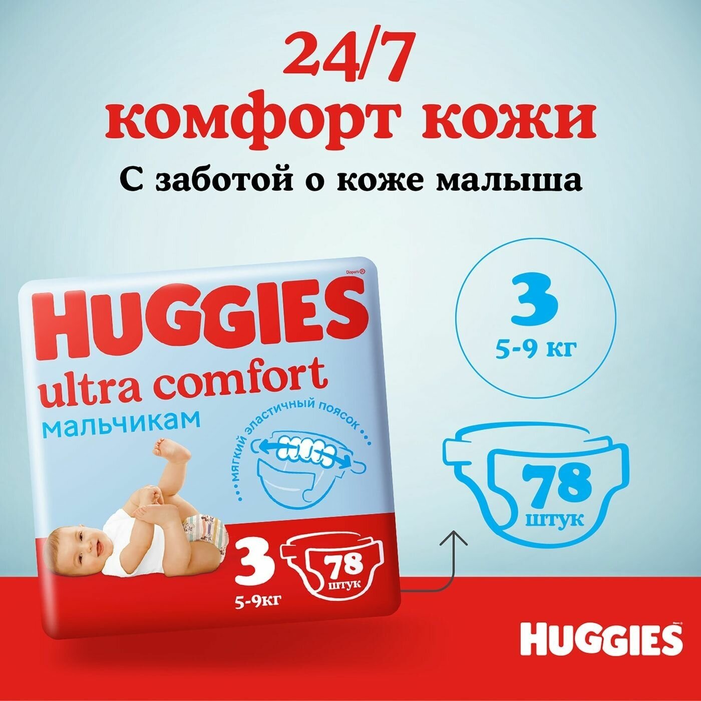 Подгузники Huggies Ultra Comfort для мальчиков 3 (5-9 кг) 94 шт 01.00.01.9402341 (размер: 3/M (4-11 кг))