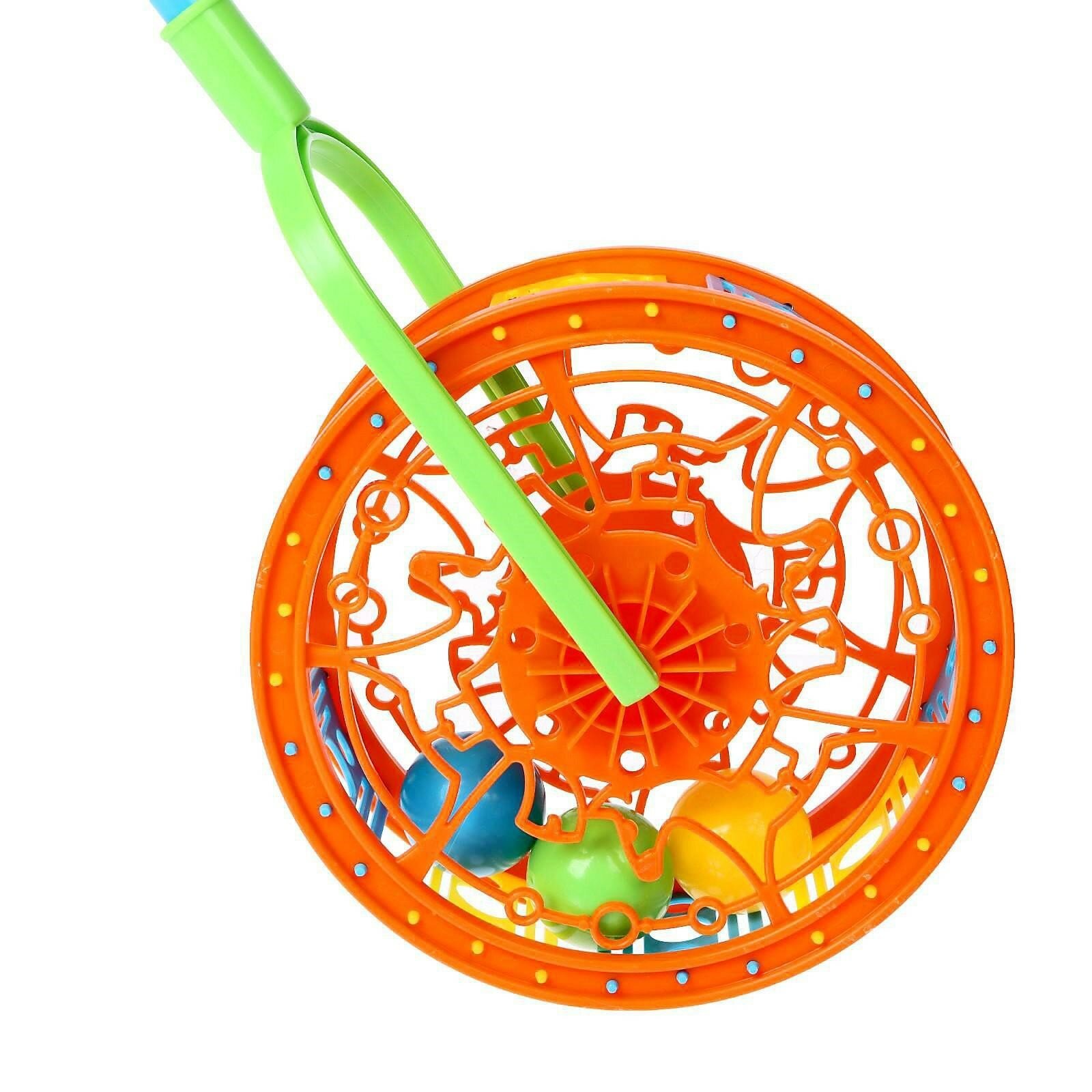 Красивый яркий дизайн наверняка привлечет внимание вашего ребенка во время прогулки. Каталка оснащена длинной удобной ручкой.