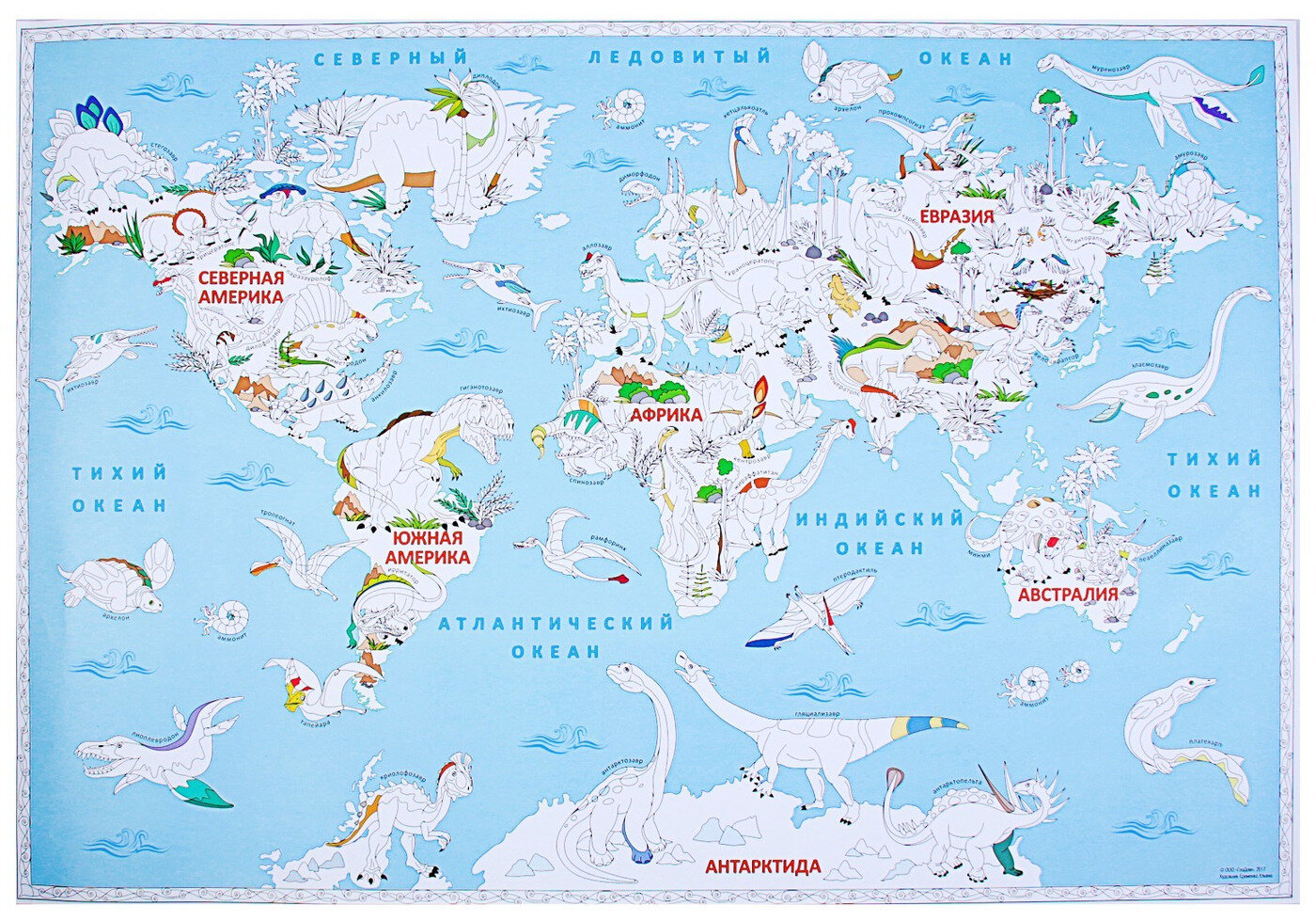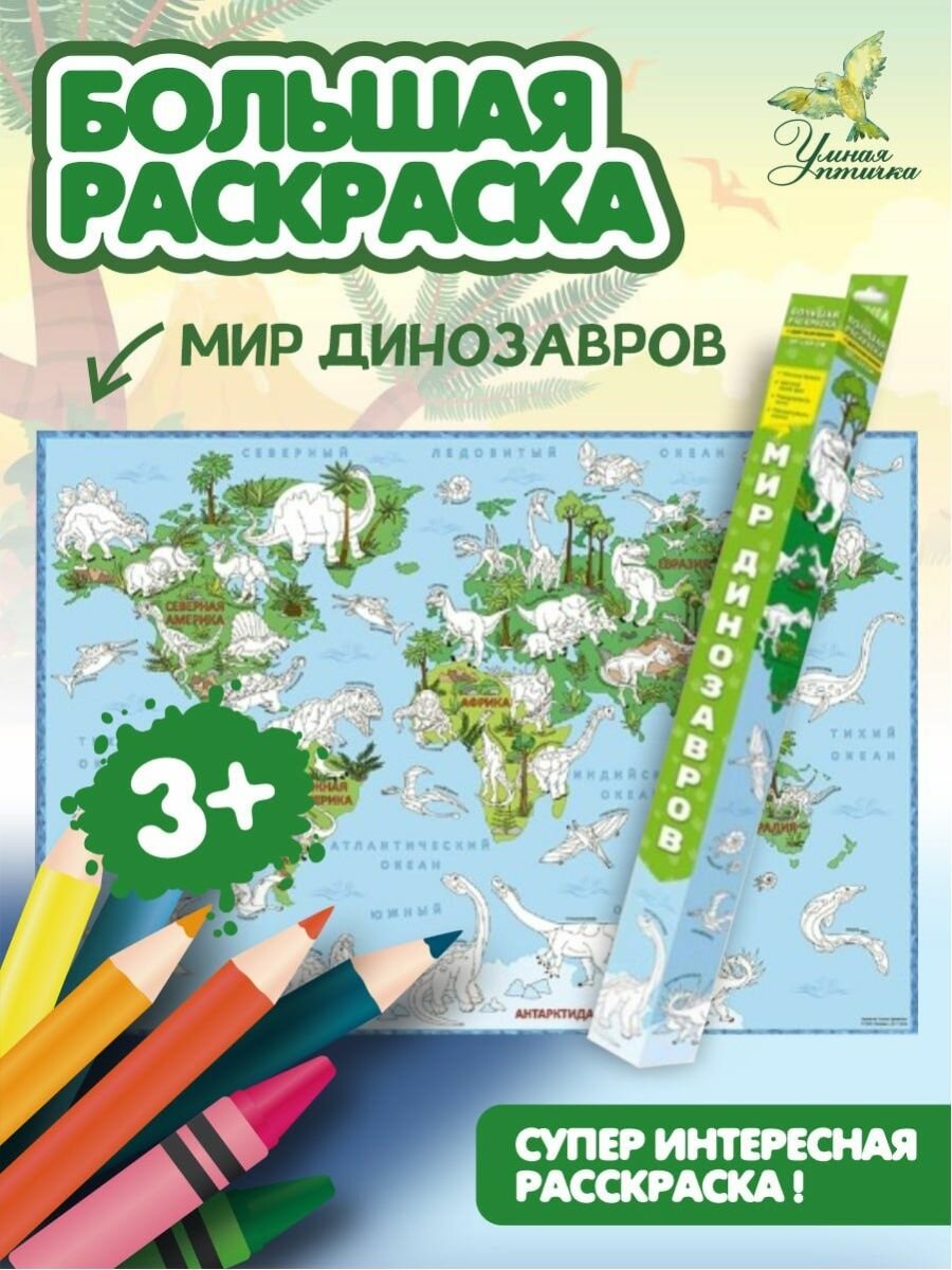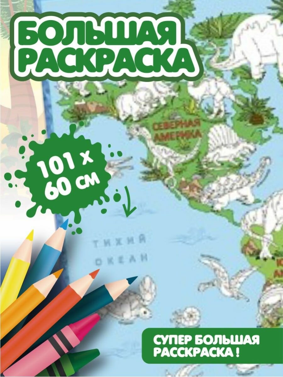 Издательство «ГЕОДОМ» выпустило большую раскраску «В мире динозавров» форматом 101*69 см, чтобы сделать увлечение динозаврами не только развлекательным для Ваших детей, но и познавательным! Виды динозавров на раскраске расположены таким образом, что можно понять, на каком материке в современном мире их можно было бы встретить. Бумага раскраски подходит для фломастеров, карандашей, гуаши, акварельных красок и всего остального – Ваш малыш может дать волю воображению! А готовое произведение можно повесить и на стену.