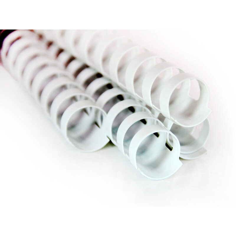 Представленные пружины изготовлены из белого пластика, превосходного сочетающегося с широчайшей цветовой гаммой цветов обложек.