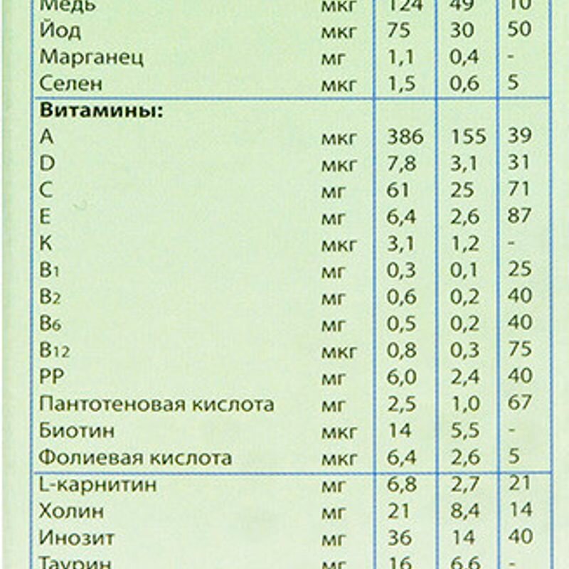 | Состав | органическая рисовая мука, сухое цельное козье молоко, адаптированная сухая молочная смесь «НЭННИ» [сухое цельное козье молоко, лактоза, растительные масла (каноловое, подсолнечное, кокосовое, высокоо-леиновое подсолнечное), минеральные вещества (натрий, кальций, железо, цинк, медь, марганец, селен), витамины (С, холин, Е, PP, D, А, пантотеновая кислота, В1, L-карнитин, В12, К, В6, В2, фолиевая кислота, биотин), антиокислители (подсолнечный лецитин, концентрат смеси токоферолов), регулятор кислотности лимонная кислота, таурин], мальтодекстрин, пребиотический комплекс (инулин, олигофруктоза), минеральные вещества (кальций, железо, йод) витамины (С, E, PP, пантотеновая кислота, B6, A, B2, B1, биотин, D, B12) |