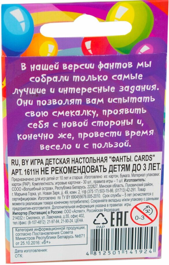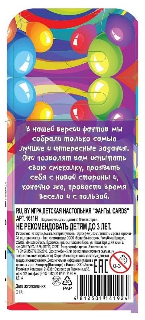 | Комплектация | карточки - 30 шт; правила игры - 1 шт |