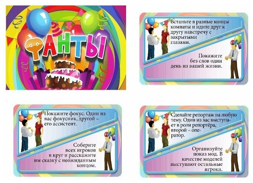 В нашей версии фантов мы собрали только самые лучшие и интересные задания. Они позволят вам испытать свою смекалку, проявить себя с новой стороны и, конечно же, провести время весело и с пользой.