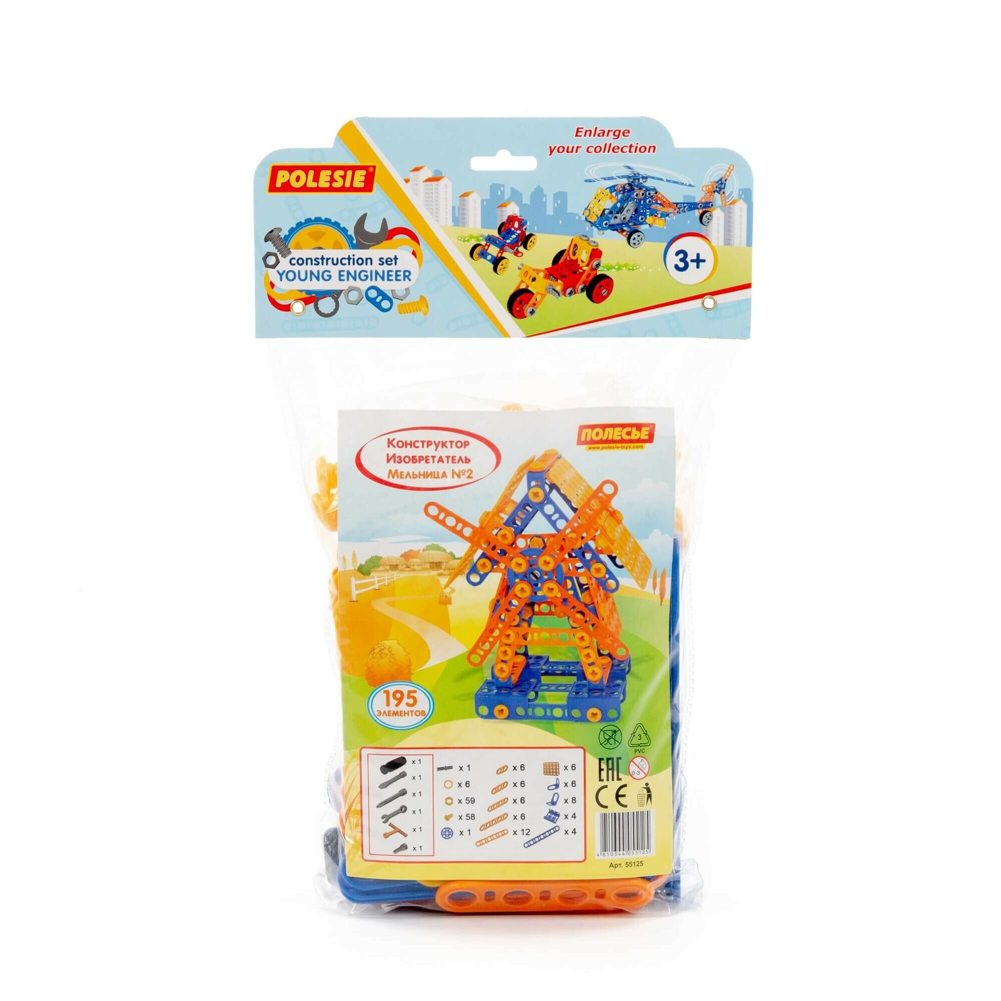 Конструктор Полесье Изобретатель Мельница №2 195 дет. (пакет) (55125)