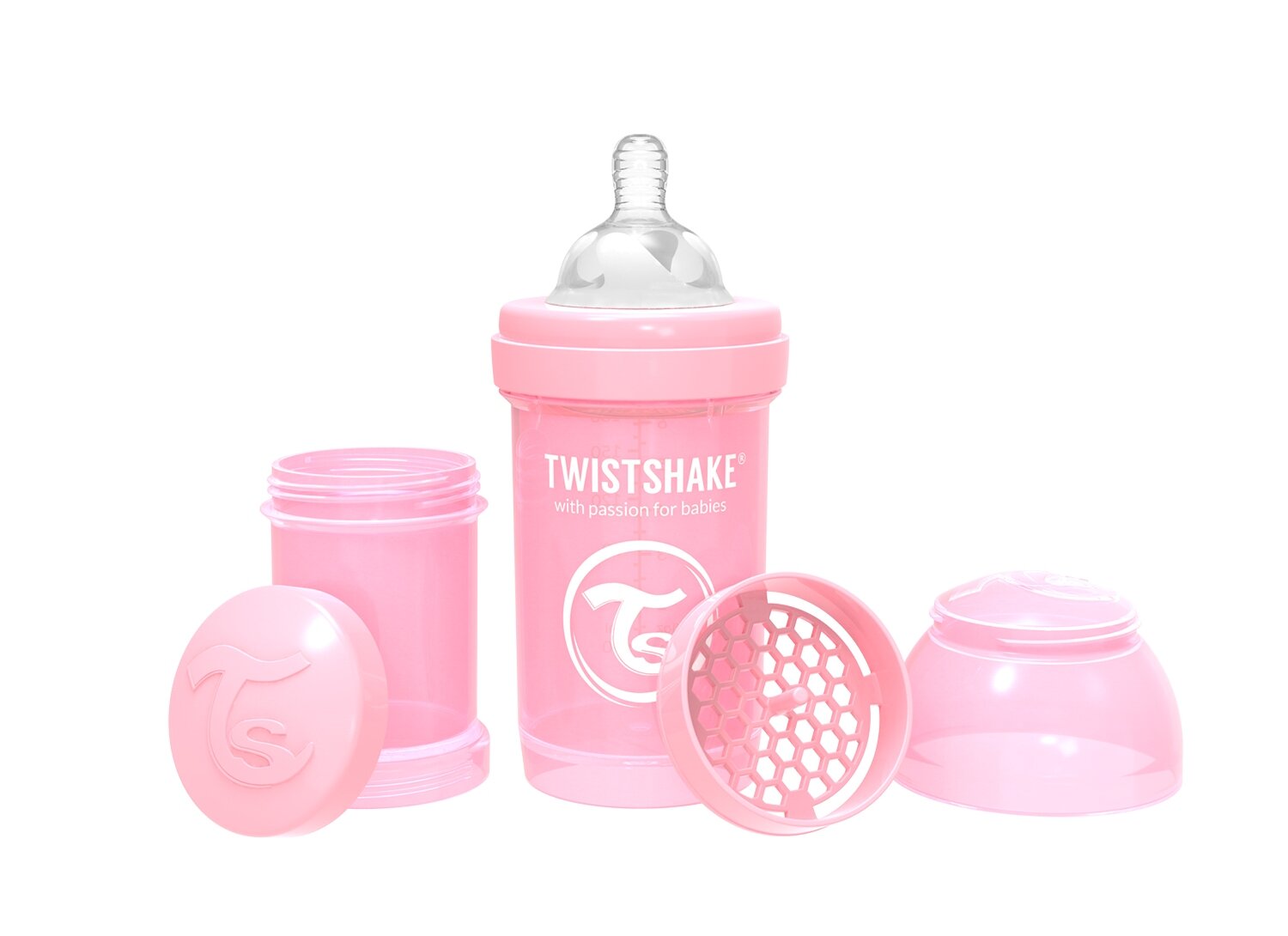 Бутылочка Twistshake идеально подходит для использования в сочетании с регулярным грудным вскармливанием. Каждая бутылочка Twistshake содержит практичный контейнер и сеточку для смешивания. Уникальная система TwistFlow значительно снижает вероятность возникновения колик у ребёнка и обеспечивает равномерный поток. У бутылочки широкое горлышко, которое облегчает процесс промывки. Благодаря особому дизайну бутылочку удобно держать в руках, а также он способствует сохранению тепла.