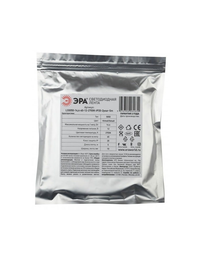 - Умная Wi-Fi светодиодная RGB лента ЭРА. Комплект 5050-30-RGB-IP65-Wifi-5m.