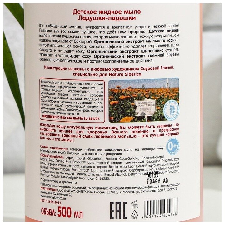 Siberica БИБЕRIКА Мыло жидкое на каждый день Ладушки-ладошки, 500 мл. Детское жидкое мыло образует пушистую пенку, которая мягко очищает нежную кожу малыша и надежно защищает от бактерий.