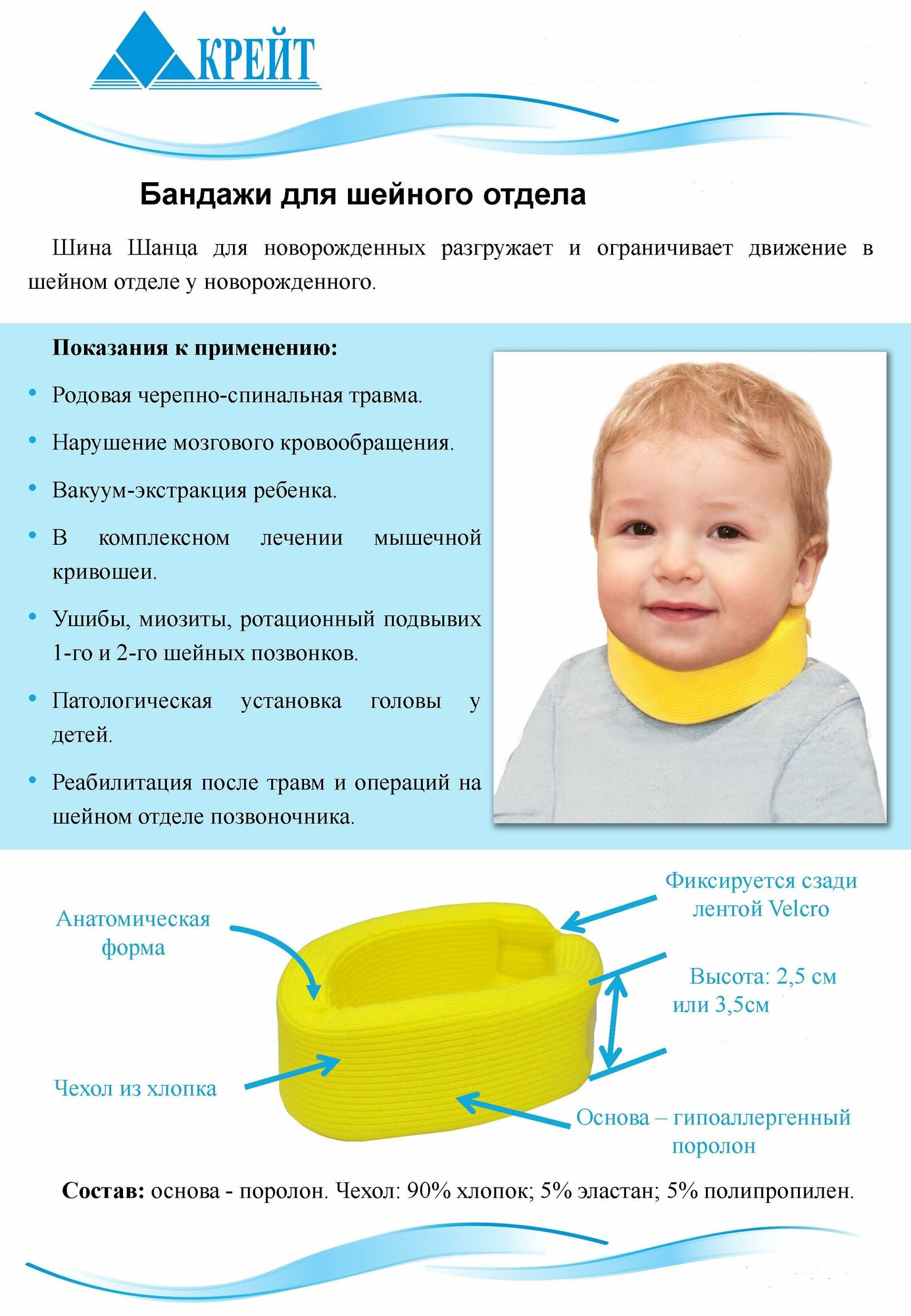 Шина Шанца, для новорожденных. Обеспечивает умеренную фиксацию и стабилизацию шейного отдела позвоночника.