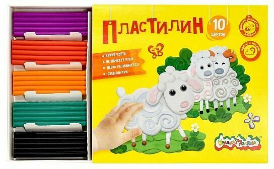 - В наборе пластилин 10 ярких природных цветов общим весом 150 г и стек.