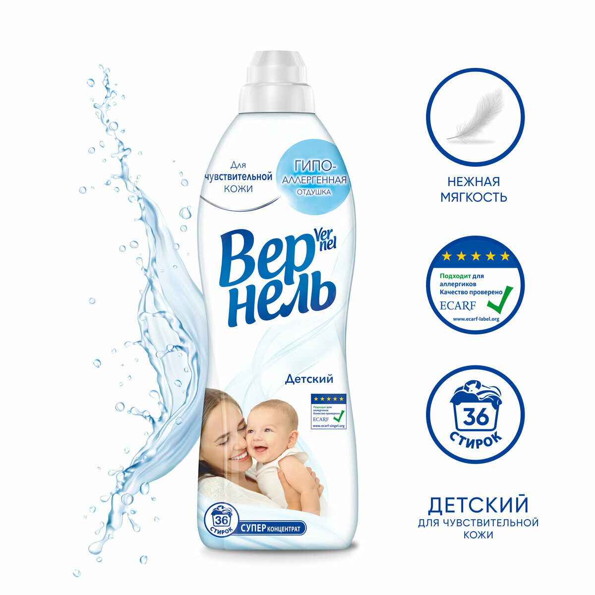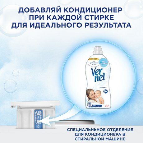 Насладитесь мягкостью белья и нежным ароматом кондиционера для детского белья. Кондиционеры Vernel для детского белья отличаются не только мягким ароматом, но и гипоаллергенными свойствами.