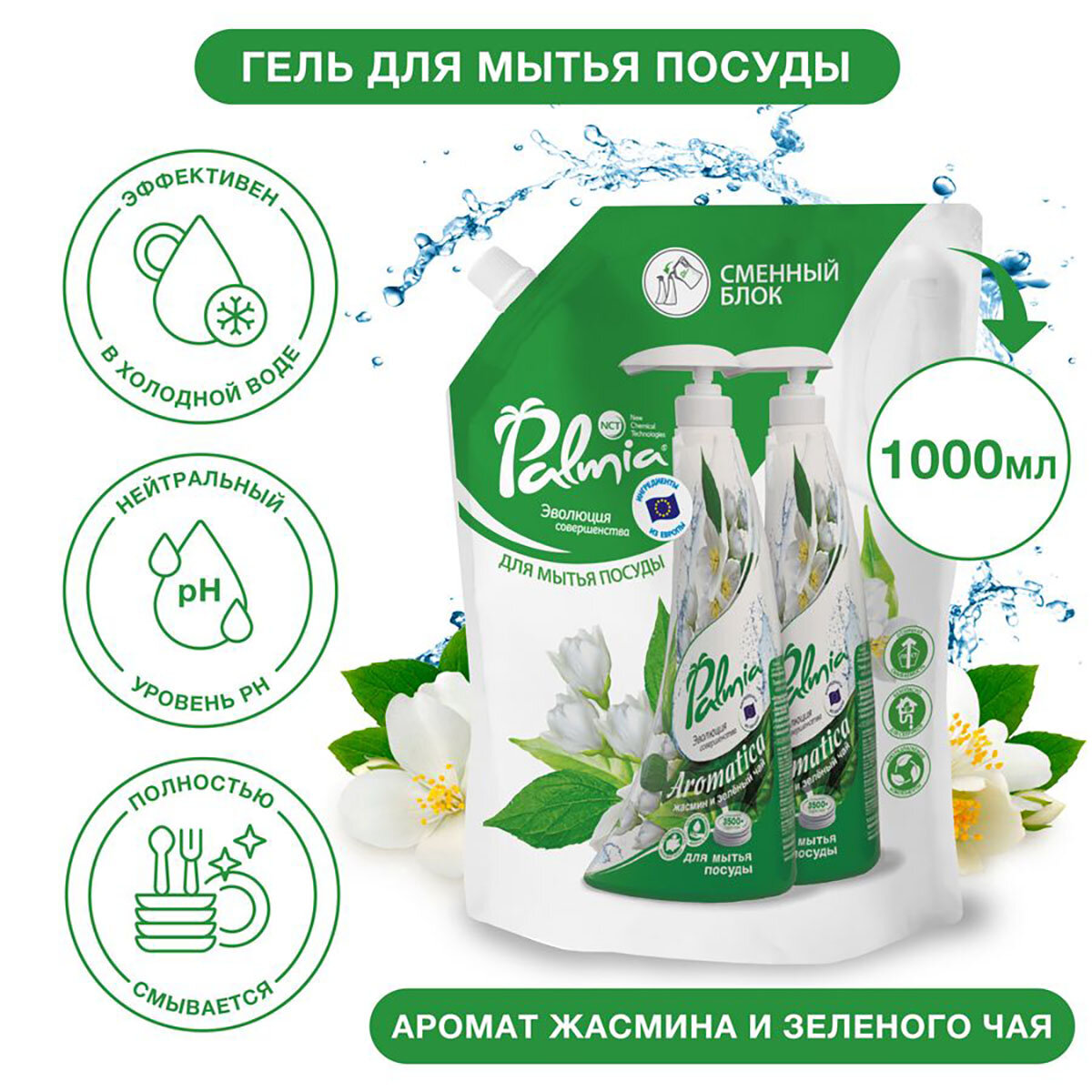 Гель Palmia Aromatica – это аромат свежей прохлады зеленого чая в сочетании с ноткой белого французского жасмина. Высокоэффективное средство для ручного мытья посуды. Удаляет любые виды и загрязнений и неприятные запахи с посуды, даже в холодной воде. Полностью смывается с посуды. Изготовлено на основе компонентов, классифицируемых как биоразлагаемые. Не содержит фосфатов, бережно относится к коже рук.