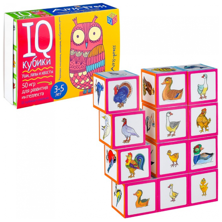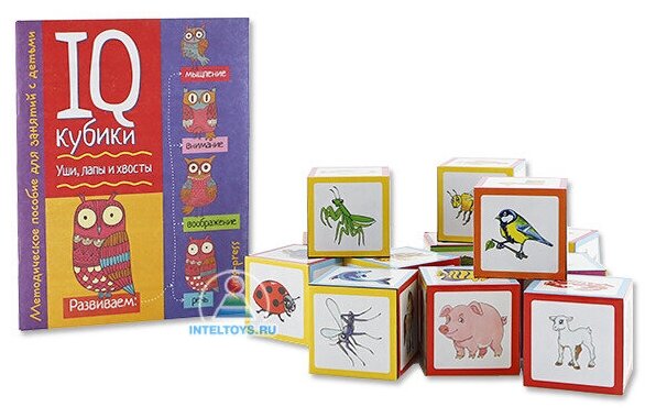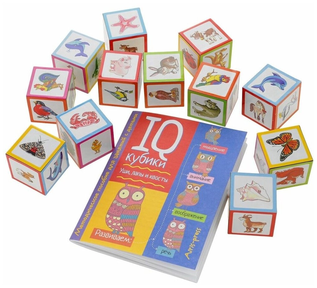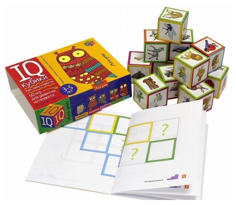 - Умные IQ-кубики «Уши, лапы и хвосты», 50 игр для развития интеллекта