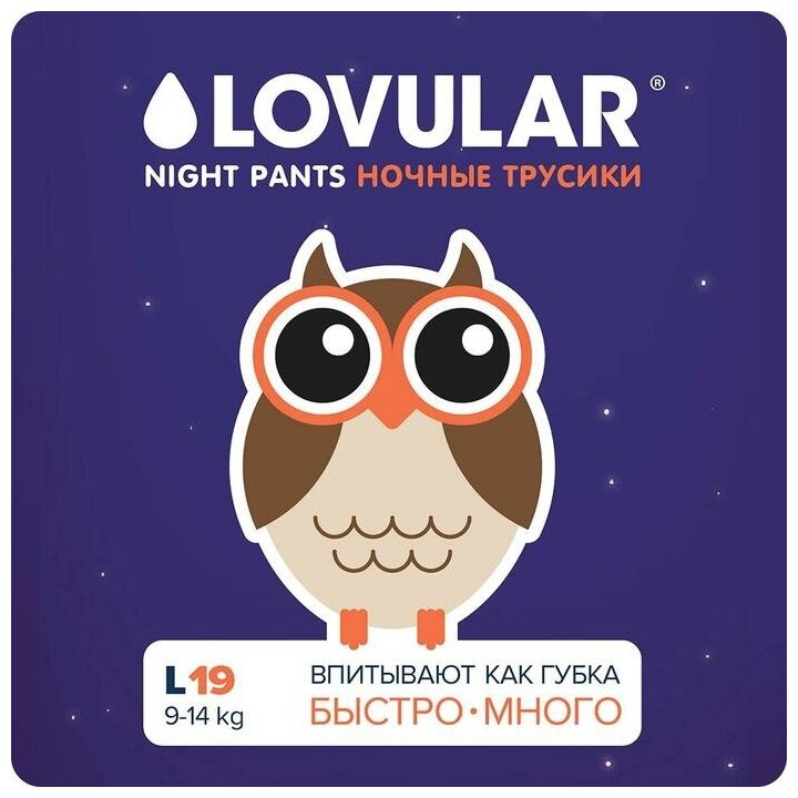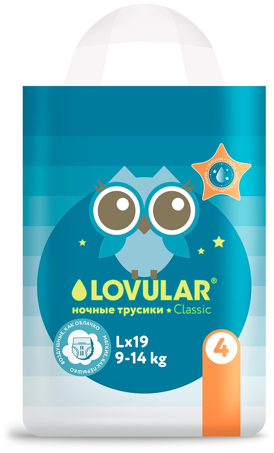 Подгузники-трусики Lovular ночные (9-14 кг) 19 шт. (01LR0020) (размер: 4/L (7-14 кг))