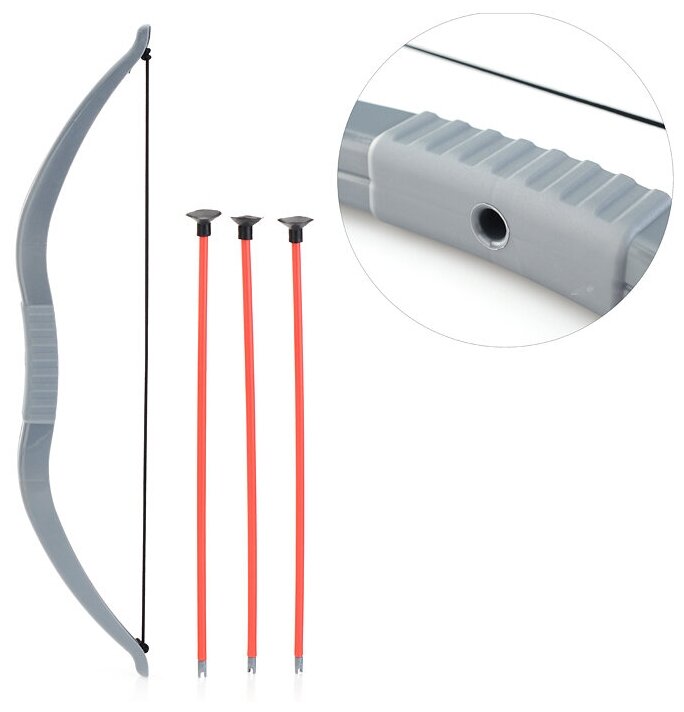 Набор стоит из лука и 3-х стрел с наконечниками-присосками. Что позволяет малышу тренироваться в меткости на гладкой поверхности. Конструкция лука обеспечивает простоту и безопасность игры. С этим набором ребенок сможет почувствовать себя настоящим лучником.