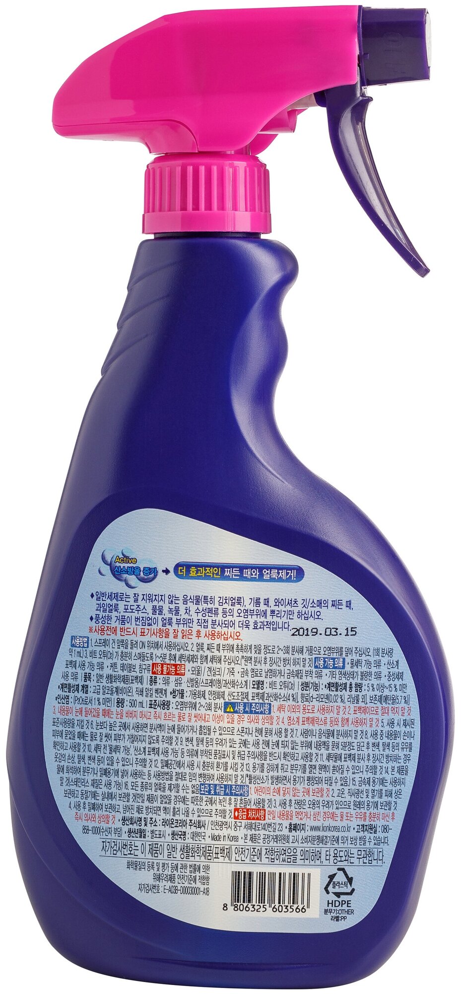 Пятновыводитель CJ Lion супер концентрированный кислородный Beat O2 спрей 500 мл (8806325-603566)