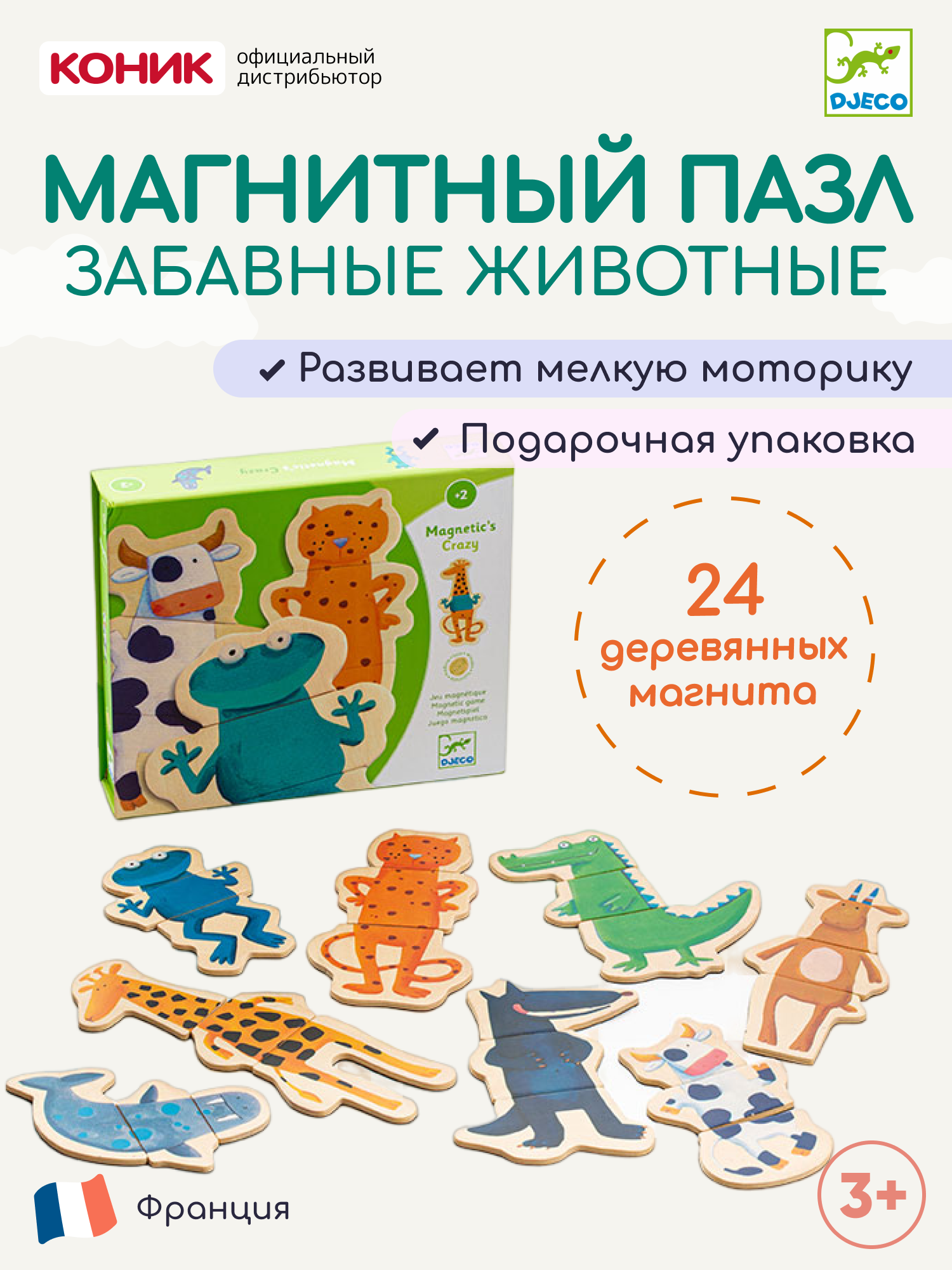 Деревянный пазл-магниты Забавные животные Djeco 03111