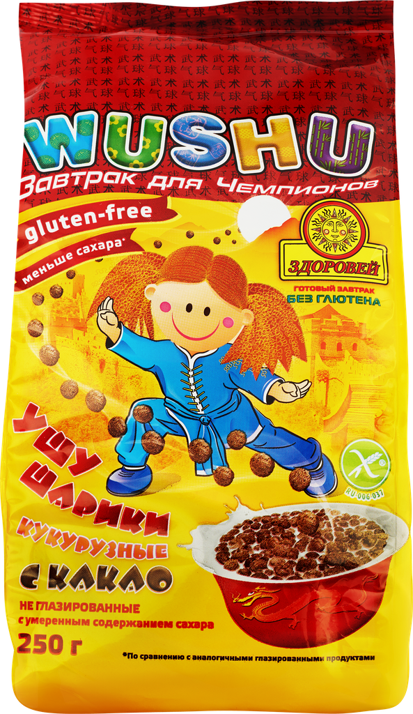 Завтрак сухой Здоровей Шарики Ушу кукурузные с какао 250 г