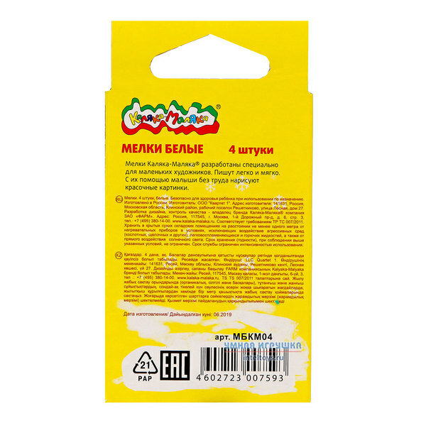 Сервис сравнения цен СкидкаГИД предлагает сравнить цены на товар «Мелки Каляка-Маляка белые 4 шт. (МБКМ04)»
