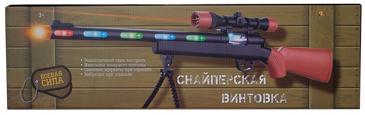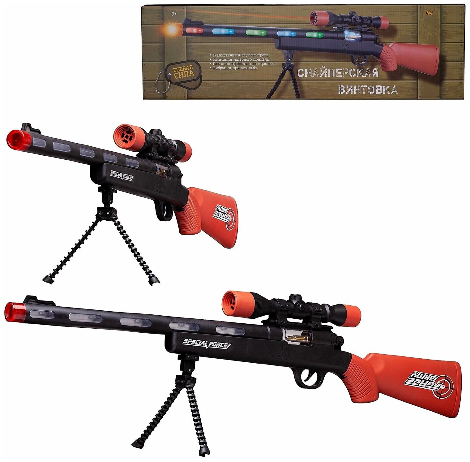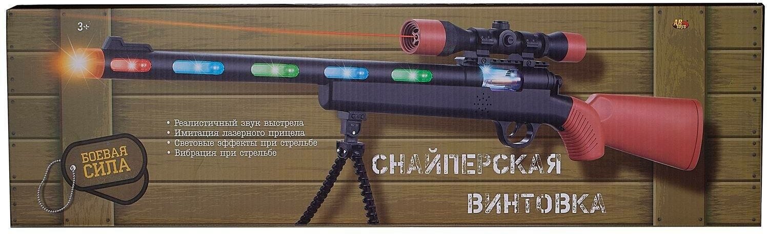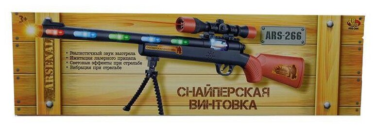 Оружие детское, электромеханическое Арсенал. Снайперская винтовка с лазером и подставкой. Реалистичный звук выстрела, световые эффекты при стрельбе, вибрация при стрельбе, световые и звуковые эффекты.